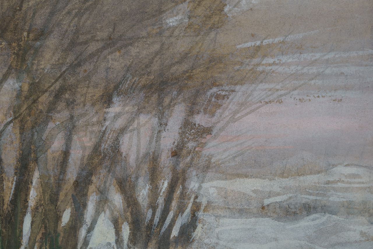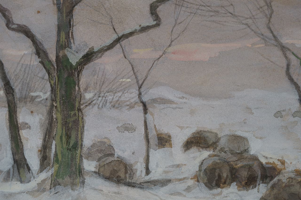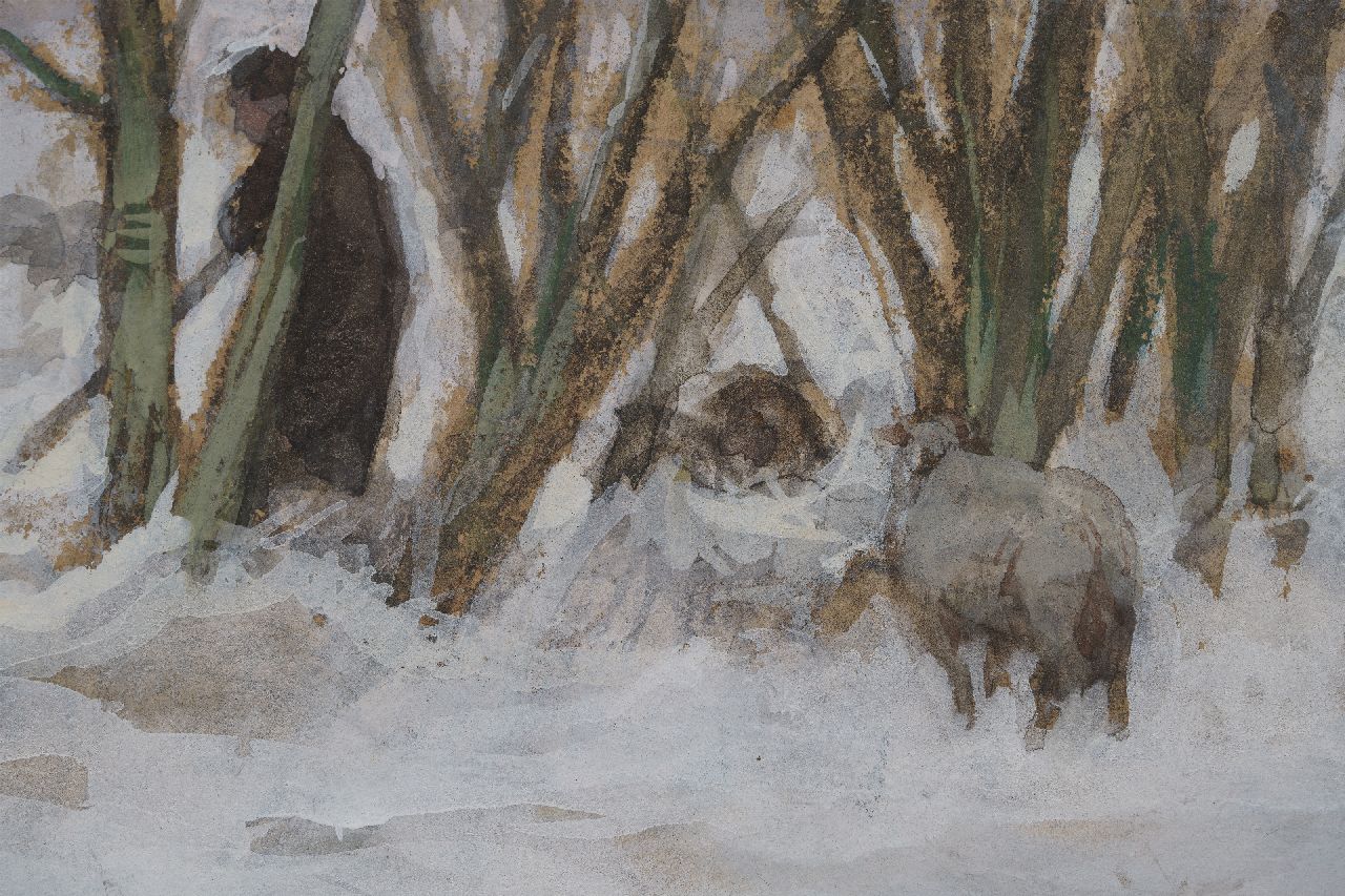 Anton Mauve kunstwerk • aquarel • tekening • te koop Herder en schapen in de sneeuw