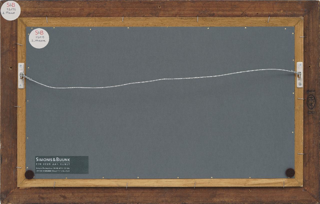 Anton Mauve is een van de bekendste schilders van de Haagse School. Zijn opleiding kreeg hij bij de dierenschilders P.F. van Os en Wouterus Verschuur. Ook werkte hij enige tijd in Oosterbeek met P.J.C. Gabriel. Landschap en dieren combineert hij vaak in zijn schilderijen. Na enige omzwervingen vestigde hij zich in 1871 in Den Haag, later in Laren, waar hij vooral de heide schilderde met wollige schaapskuddes vervloeiend in de zilvergrijze tonen van het landschap. Een van zijn meest geliefde plekjes was een even buiten Laren gelegen stuk woeste grond, later Mauvezand genoemd.