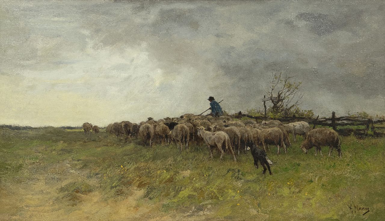 Anton Mauve kunstwerk • schilderij • voorheen te koop Herder met zijn kudde