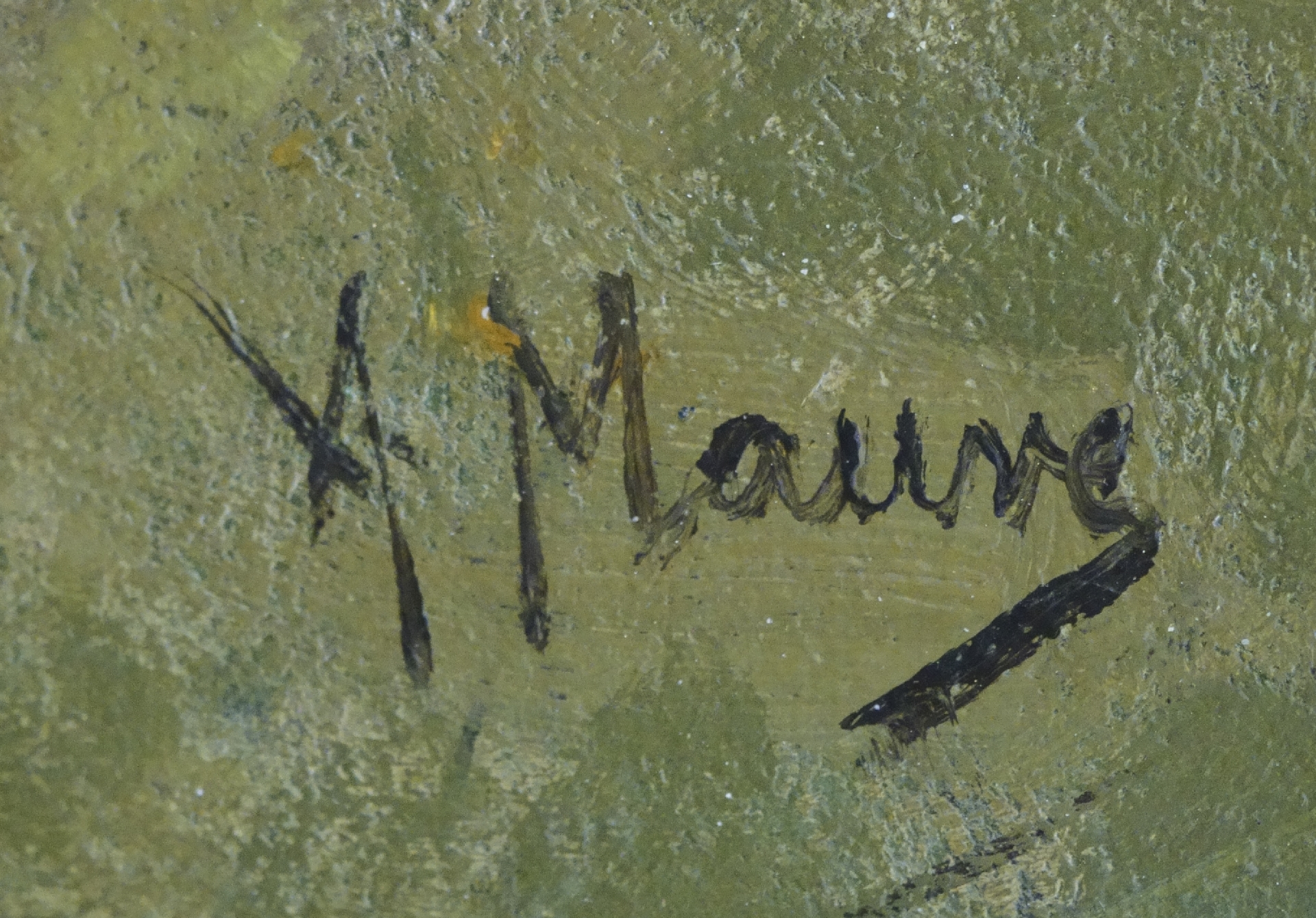 Anton Mauve is een van de bekendste schilders van de Haagse School. Zijn opleiding kreeg hij bij de dierenschilders P.F. van Os en Wouterus Verschuur. Ook werkte hij enige tijd in Oosterbeek met P.J.C. Gabriel. Landschap en dieren combineert hij vaak in zijn schilderijen. Na enige omzwervingen vestigde hij zich in 1871 in Den Haag, later in Laren, waar hij vooral de heide schilderde met wollige schaapskuddes vervloeiend in de zilvergrijze tonen van het landschap. Een van zijn meest geliefde plekjes was een even buiten Laren gelegen stuk woeste grond, later Mauvezand genoemd.