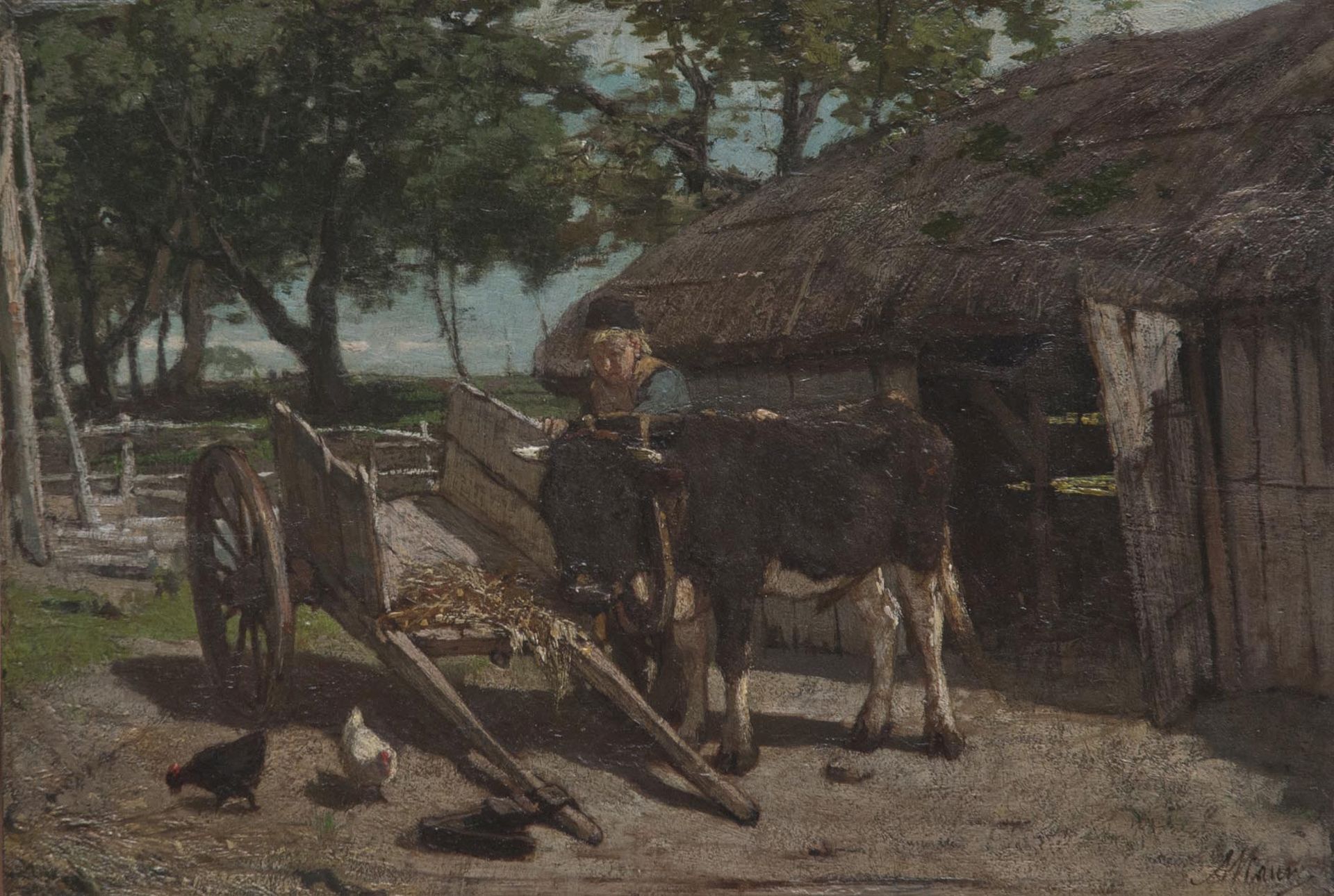 Anton Mauve kunstwerk • schilderij • voorheen te koop Het inspannen van de jonge stier