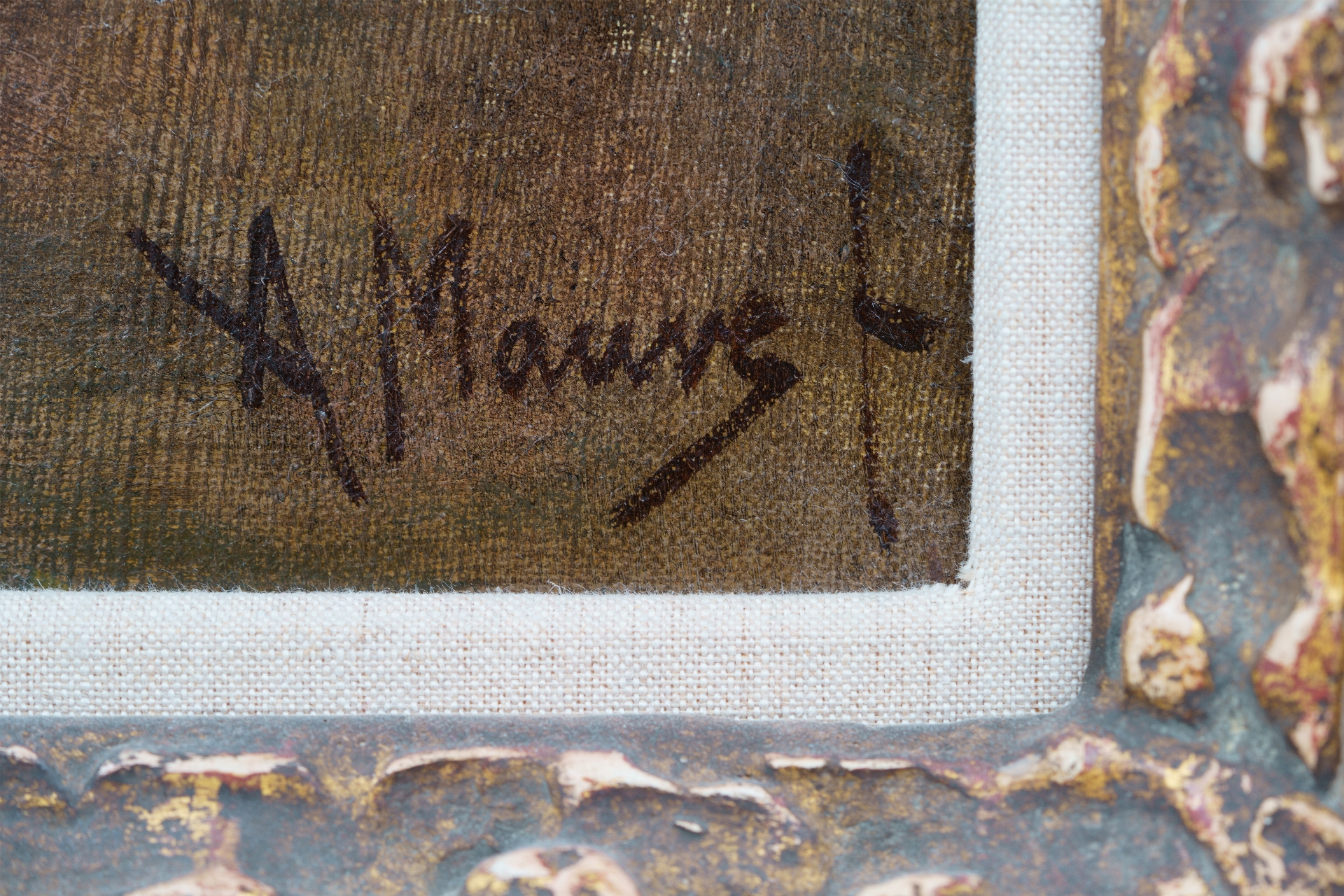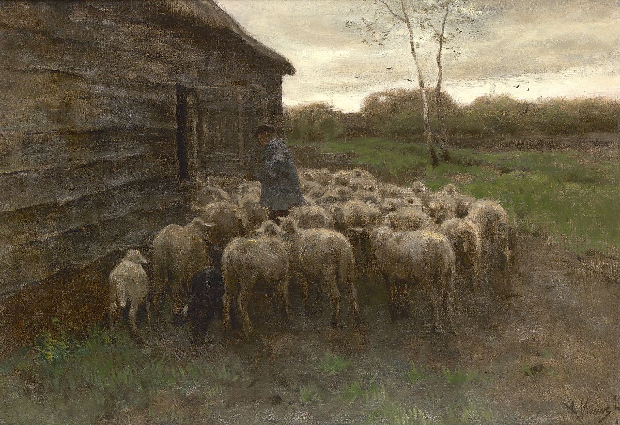 Anton Mauve is een van de bekendste schilders van de Haagse School. Zijn opleiding kreeg hij bij de dierenschilders P.F. van Os en Wouterus Verschuur. Ook werkte hij enige tijd in Oosterbeek met P.J.C. Gabriel. Landschap en dieren combineert hij vaak in zijn schilderijen. Na enige omzwervingen vestigde hij zich in 1871 in Den Haag, later in Laren, waar hij vooral de heide schilderde met wollige schaapskuddes vervloeiend in de zilvergrijze tonen van het landschap. Een van zijn meest geliefde plekjes was een even buiten Laren gelegen stuk woeste grond, later Mauvezand genoemd.