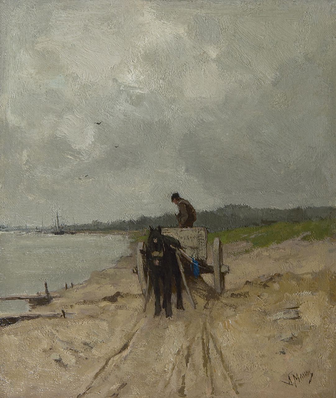 Anton Mauve kunstwerk • schilderij • voorheen te koop Zandrijder aan de oever van de rivier de Rijn
