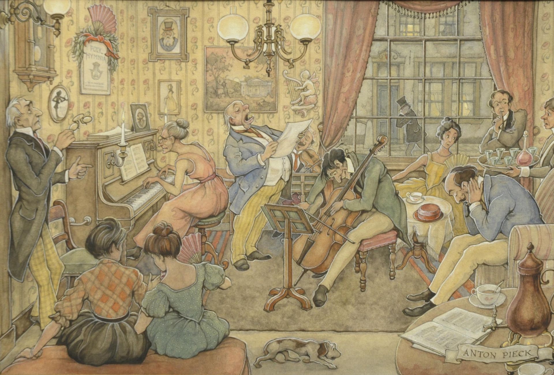 Anton Pieck kunstwerk • aquarel • tekening • voorheen te koop Muziekavond
