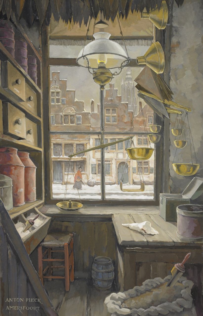 Anton Pieck kunstwerk • schilderij • voorheen te koop Kruidenierswinkeltje aan 't Havik, Amersfoort
