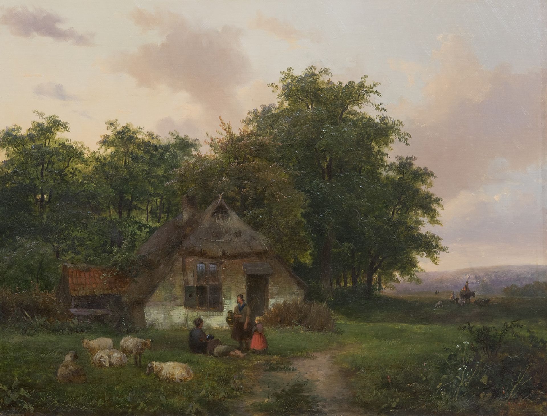 Antonius Renardus Rietstap kunstwerk • schilderij • te koop Landschap met figuren bij een boerderij