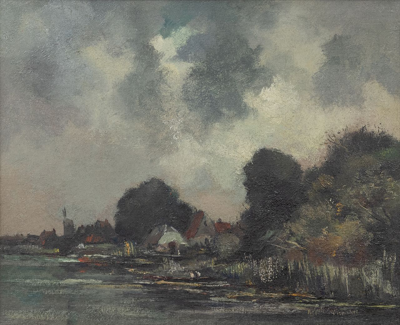 Antoon Markus kunstwerk • schilderij • voorheen te koop Dorpje aan het water