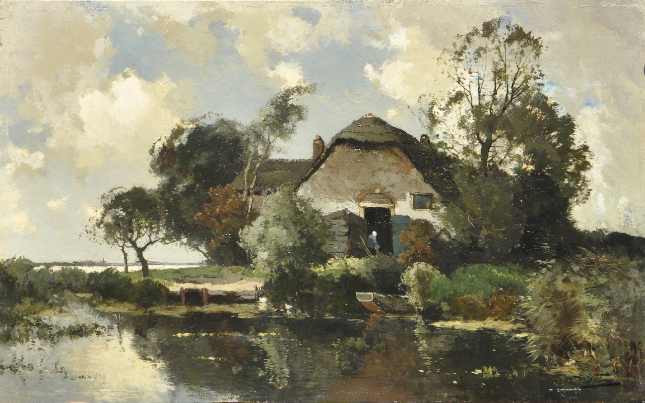 Arend Jan van Driesten kunstwerk • schilderij • voorheen te koop Boerderij aan het water