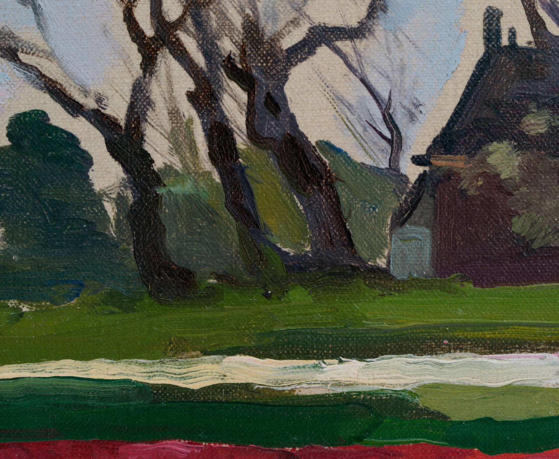 olieverf op schildersboard 28,5 x 49,7 cm, gesigneerd rechtsonder