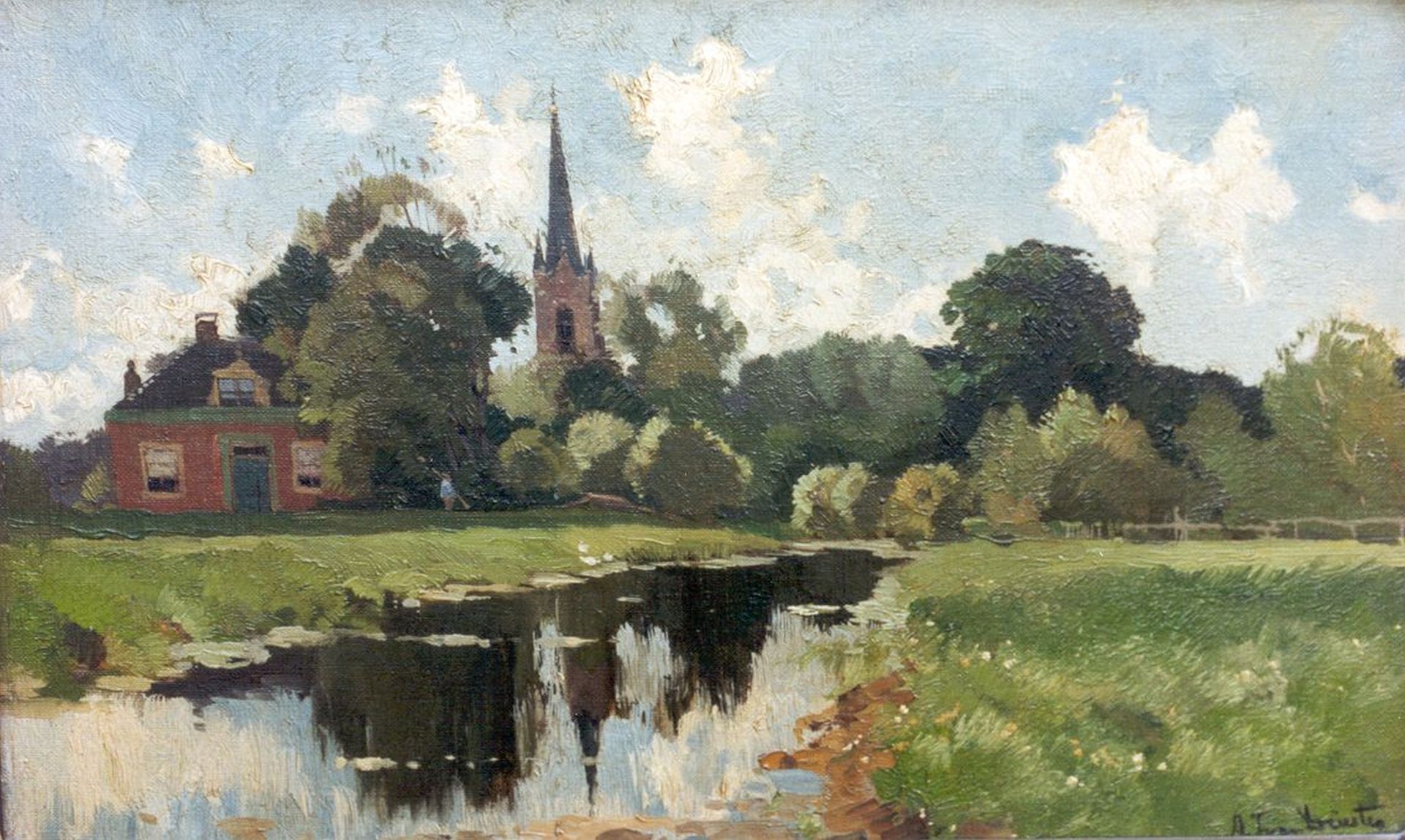 olieverf op doek op paneel 31,4 x 49,7 cm, gesigneerd rechtsonder en verso
