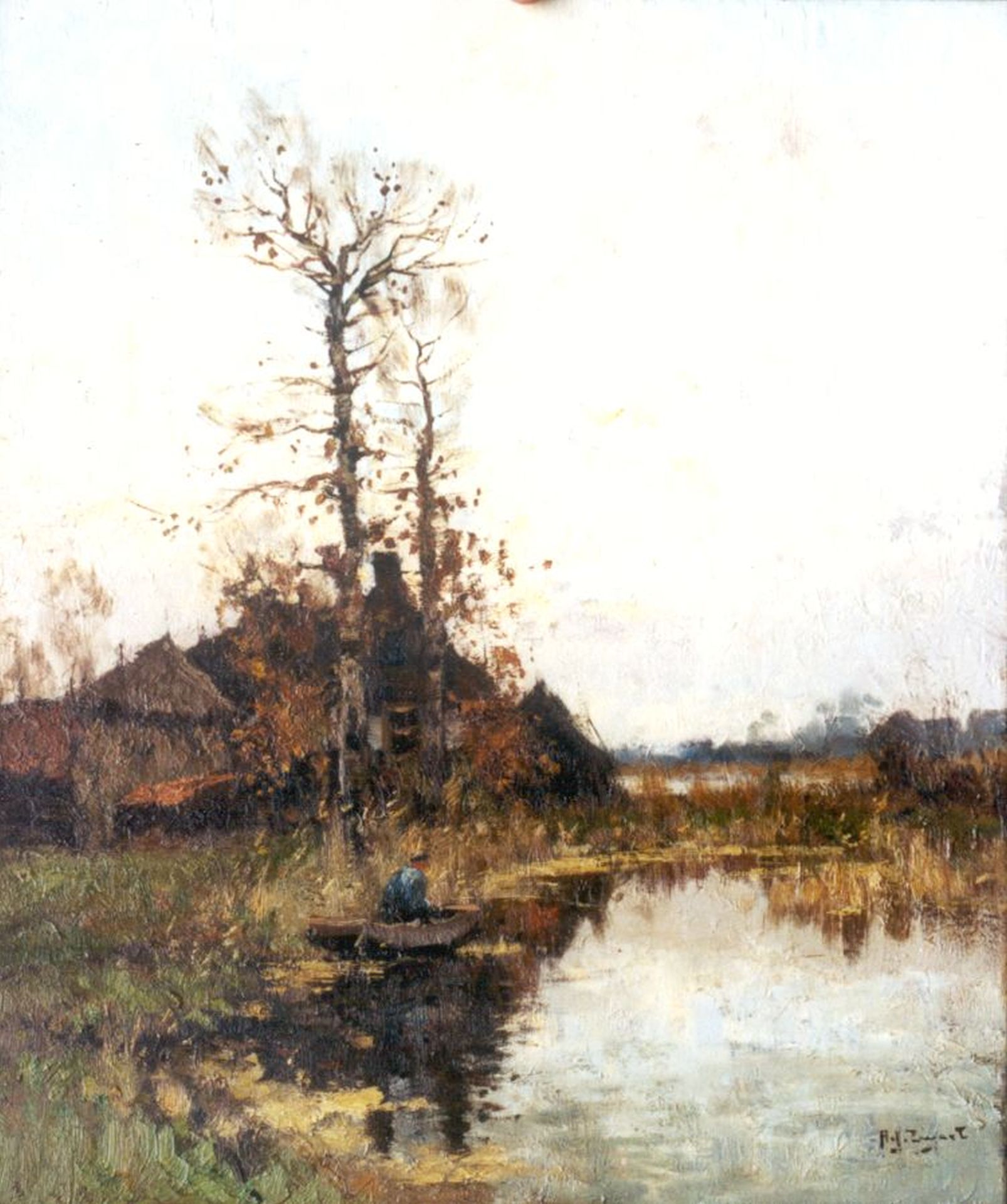 Arie Zwart kunstwerk • schilderij • voorheen te koop Boer in een roeiboot
