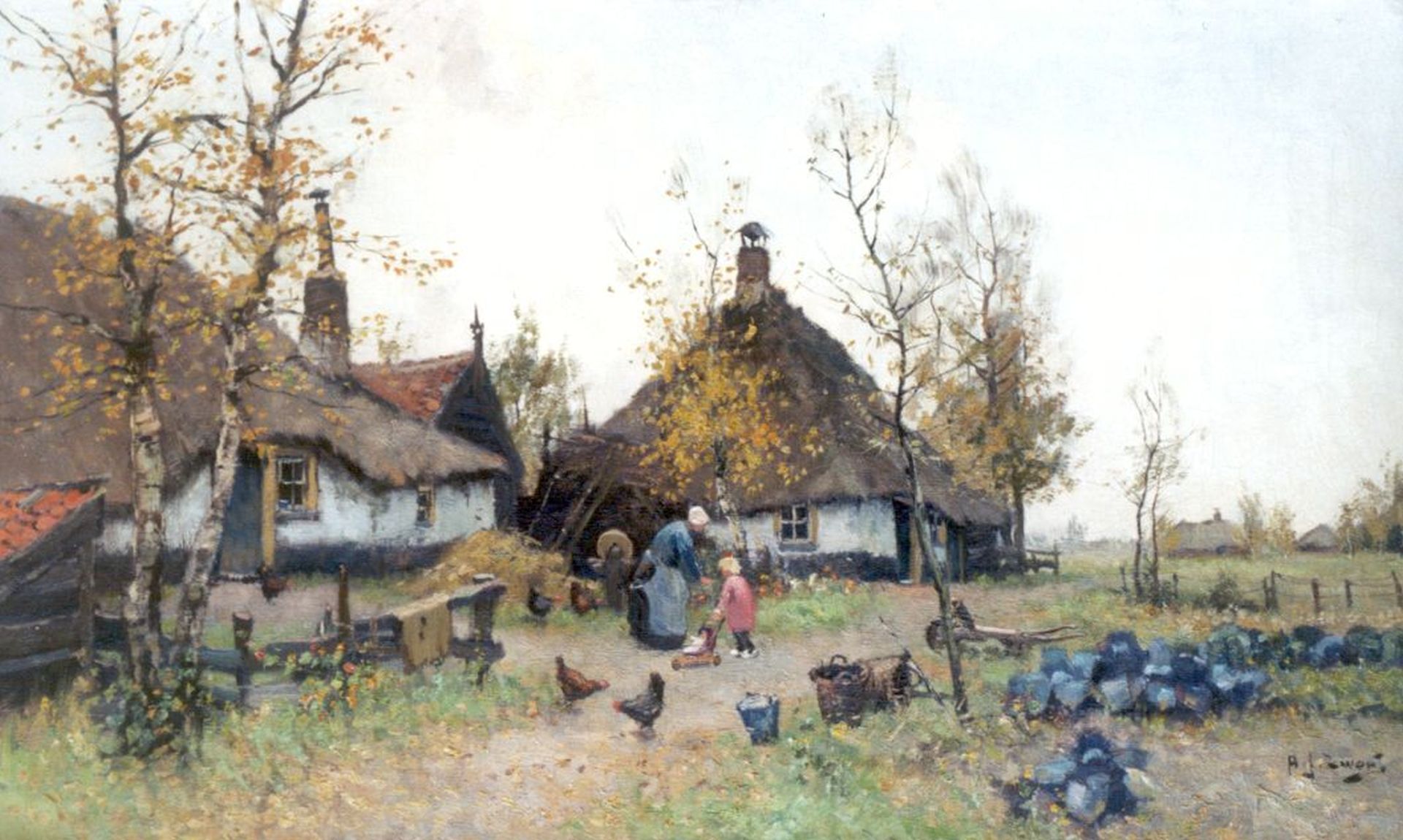 Arie Zwart kunstwerk • schilderij • voorheen te koop Het voeren van de kippen