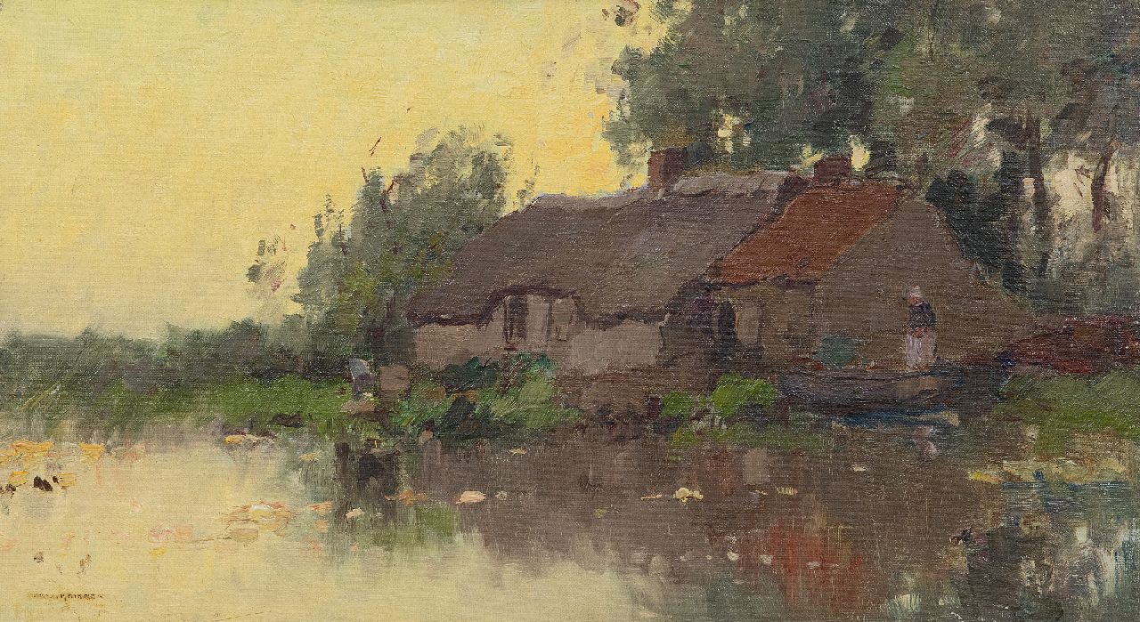 Aris Knikker kunstwerk • schilderij • te koop Boerderij aan het water