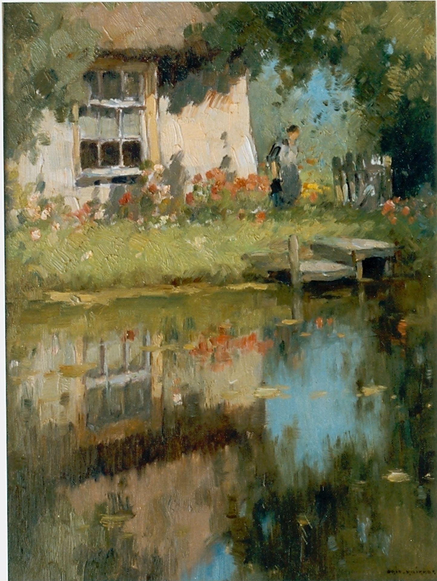 Aris Knikker kunstwerk • schilderij • voorheen te koop Huisje aan het water