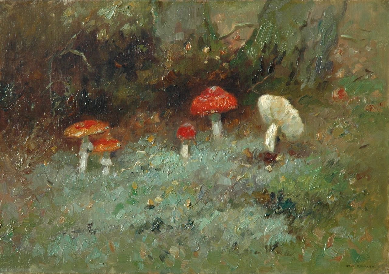 Aris Knikker kunstwerk • schilderij • voorheen te koop Paddestoelen in het bos