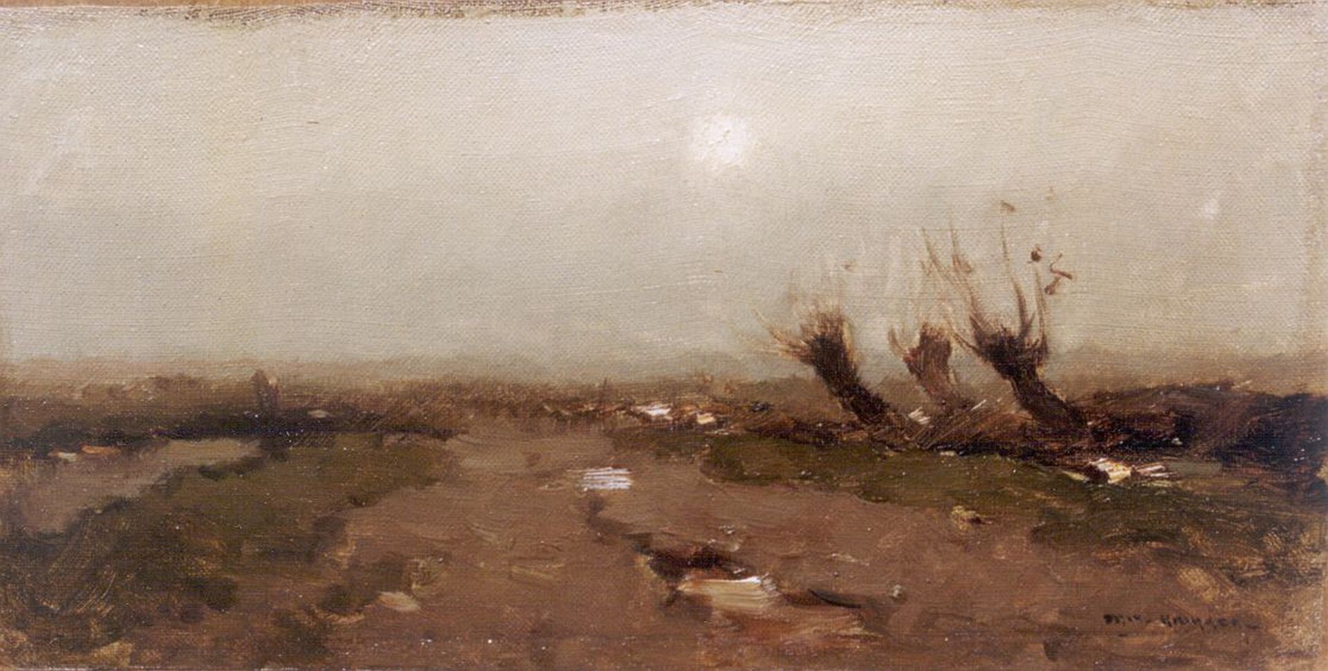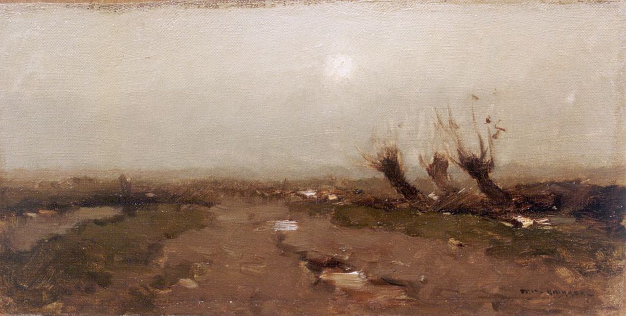 Aris Knikker kunstwerk • schilderij • voorheen te koop Polderlandschap met knotwilgen