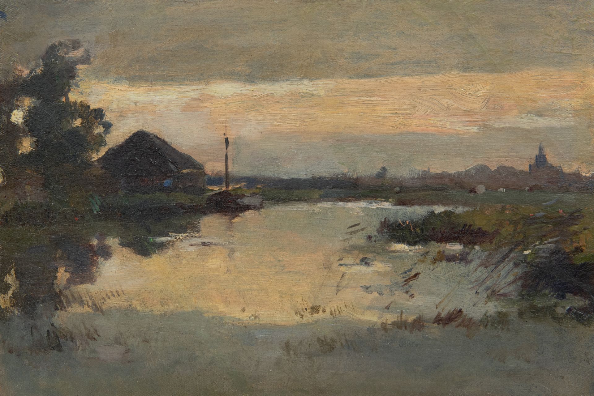 Aris Knikker kunstwerk • schilderij • te koop Riviergezicht bij avond