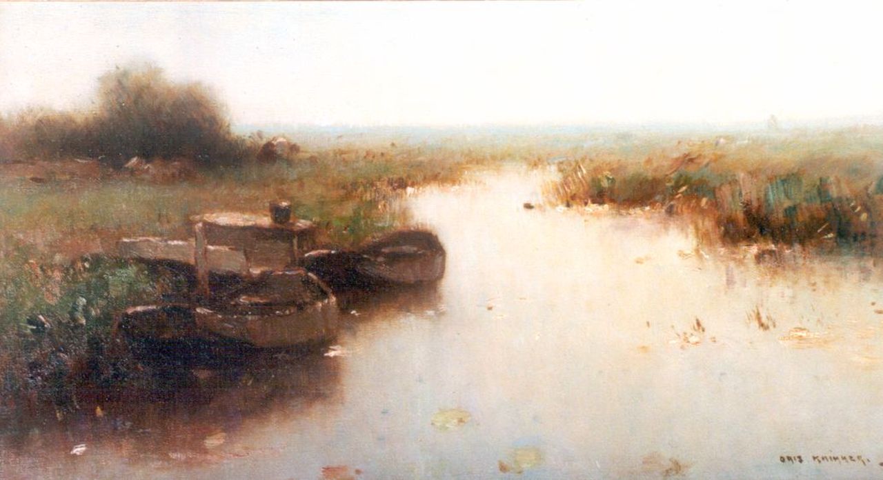 Aris Knikker kunstwerk • schilderij • voorheen te koop Roeiboot in polderlandschap