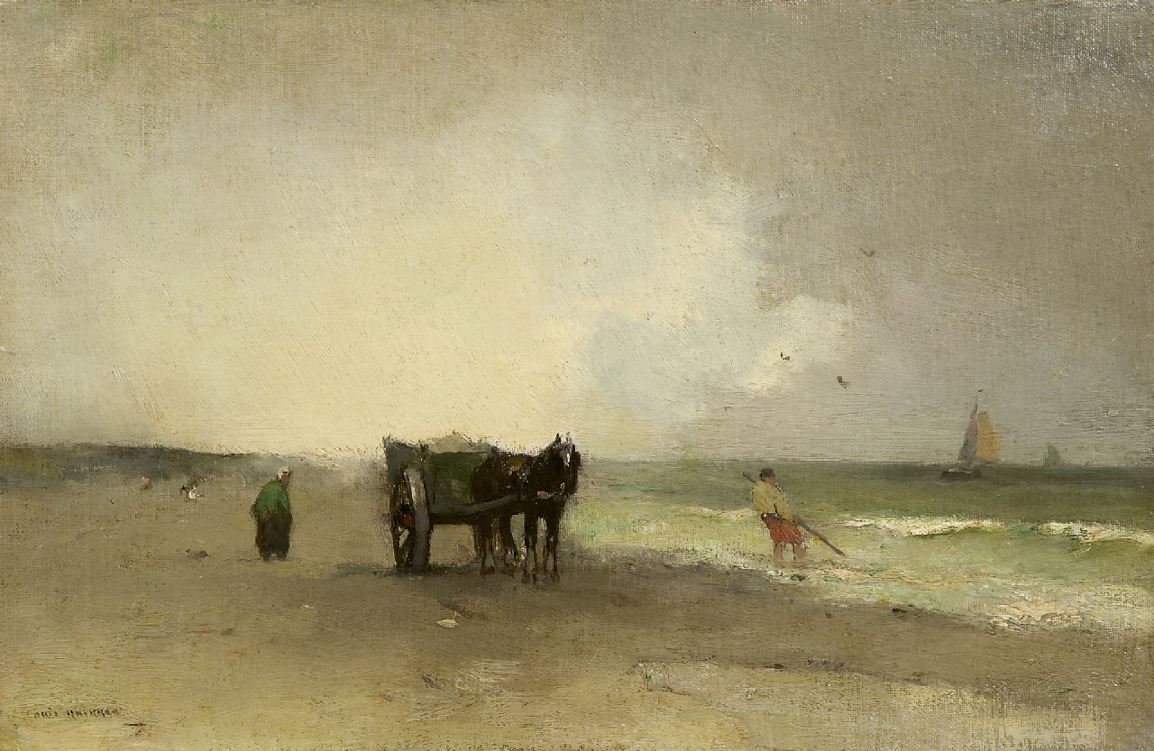 Aris Knikker kunstwerk • schilderij • voorheen te koop Strandgezicht met schelpenvisser