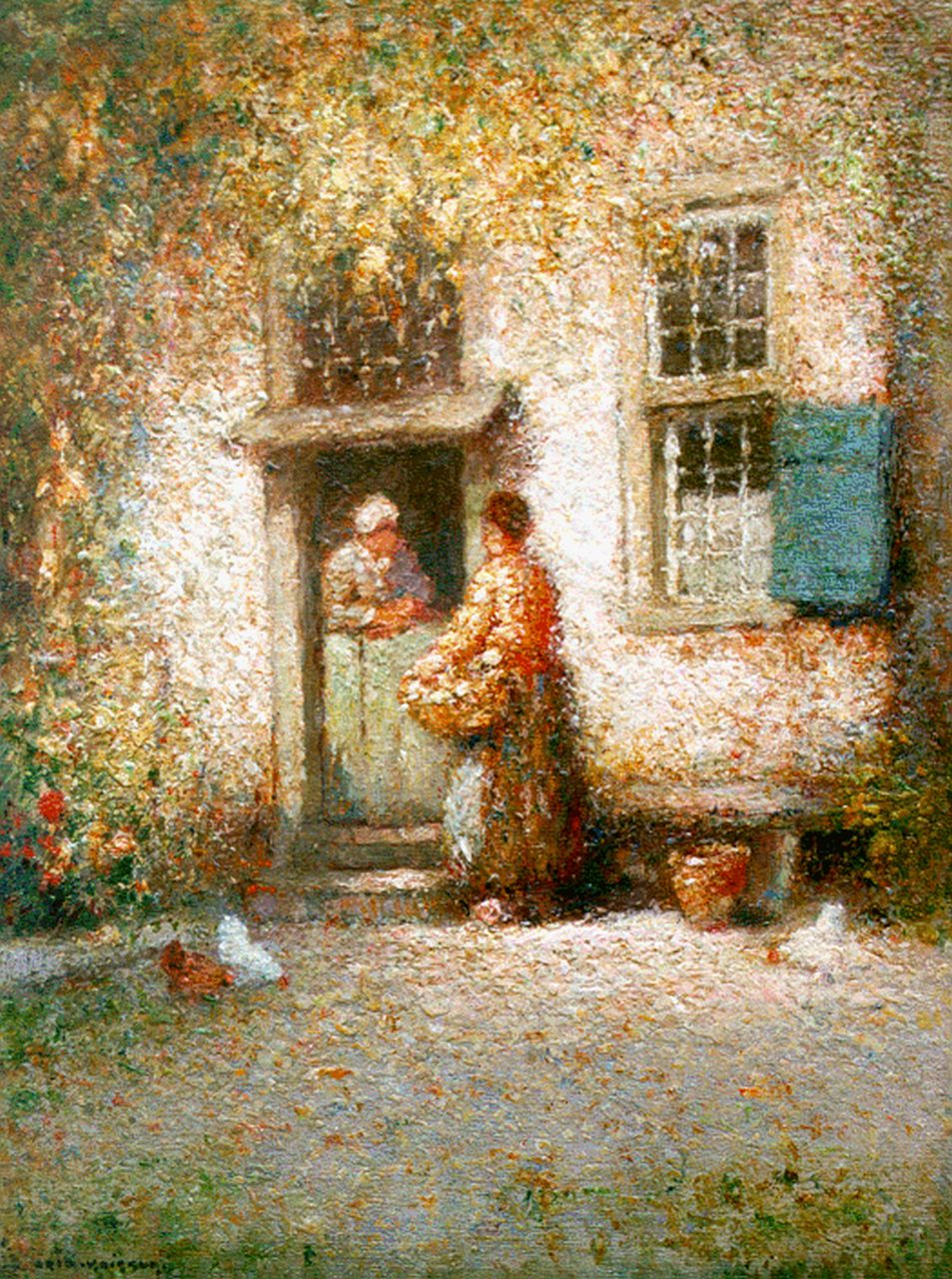 Aris Knikker kunstwerk • schilderij • voorheen te koop Twee boerenvrouwen in gesprek