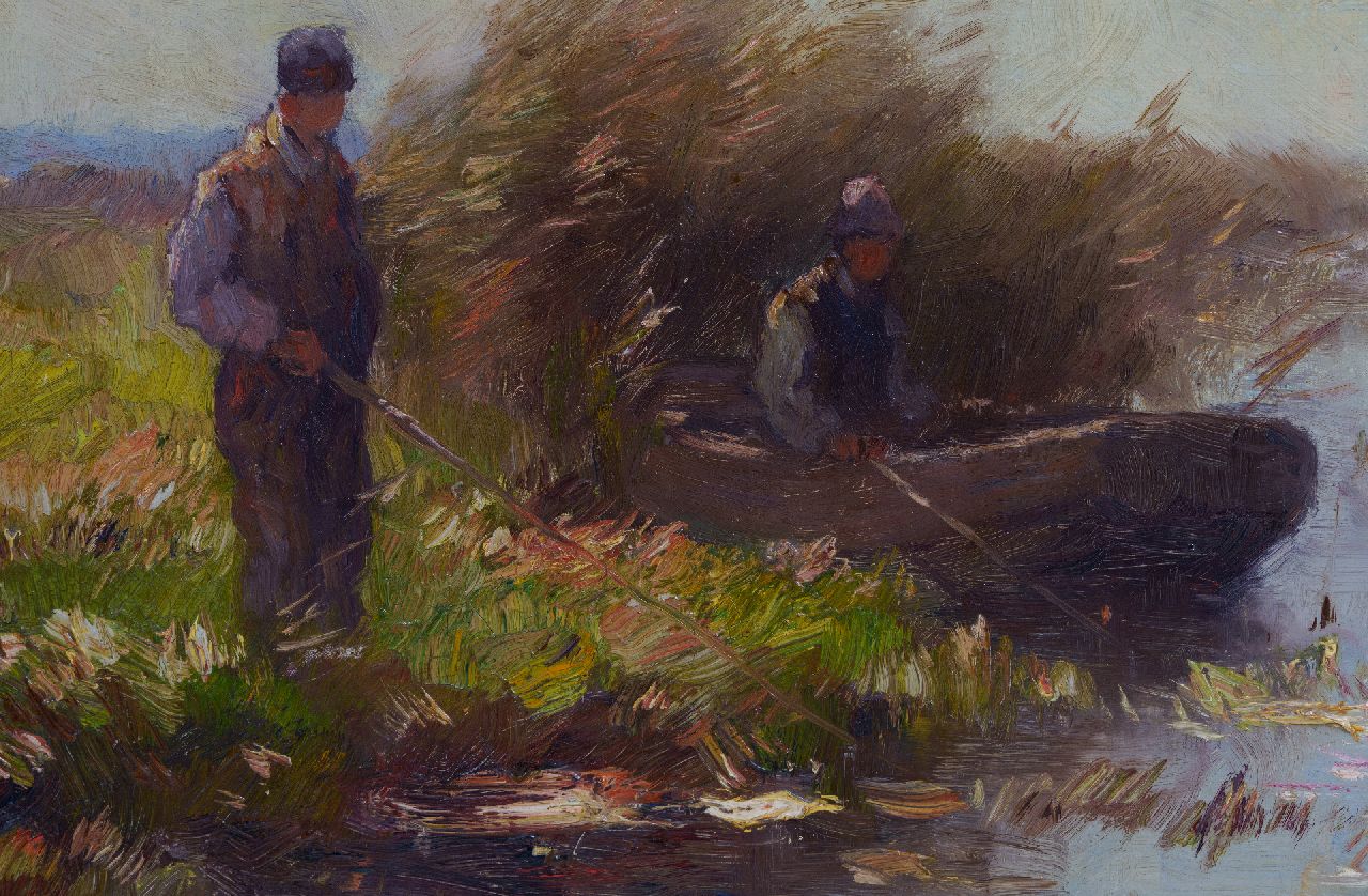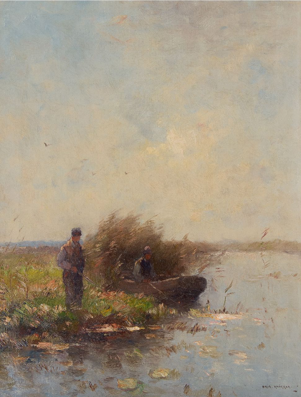 Aris Knikker kunstwerk • schilderij • te koop Vissers aan de waterkant
