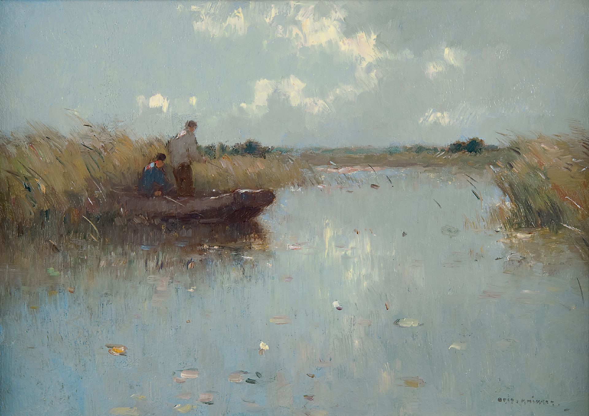 Aris Knikker kunstwerk • schilderij • voorheen te koop Vissers in een rietkraag