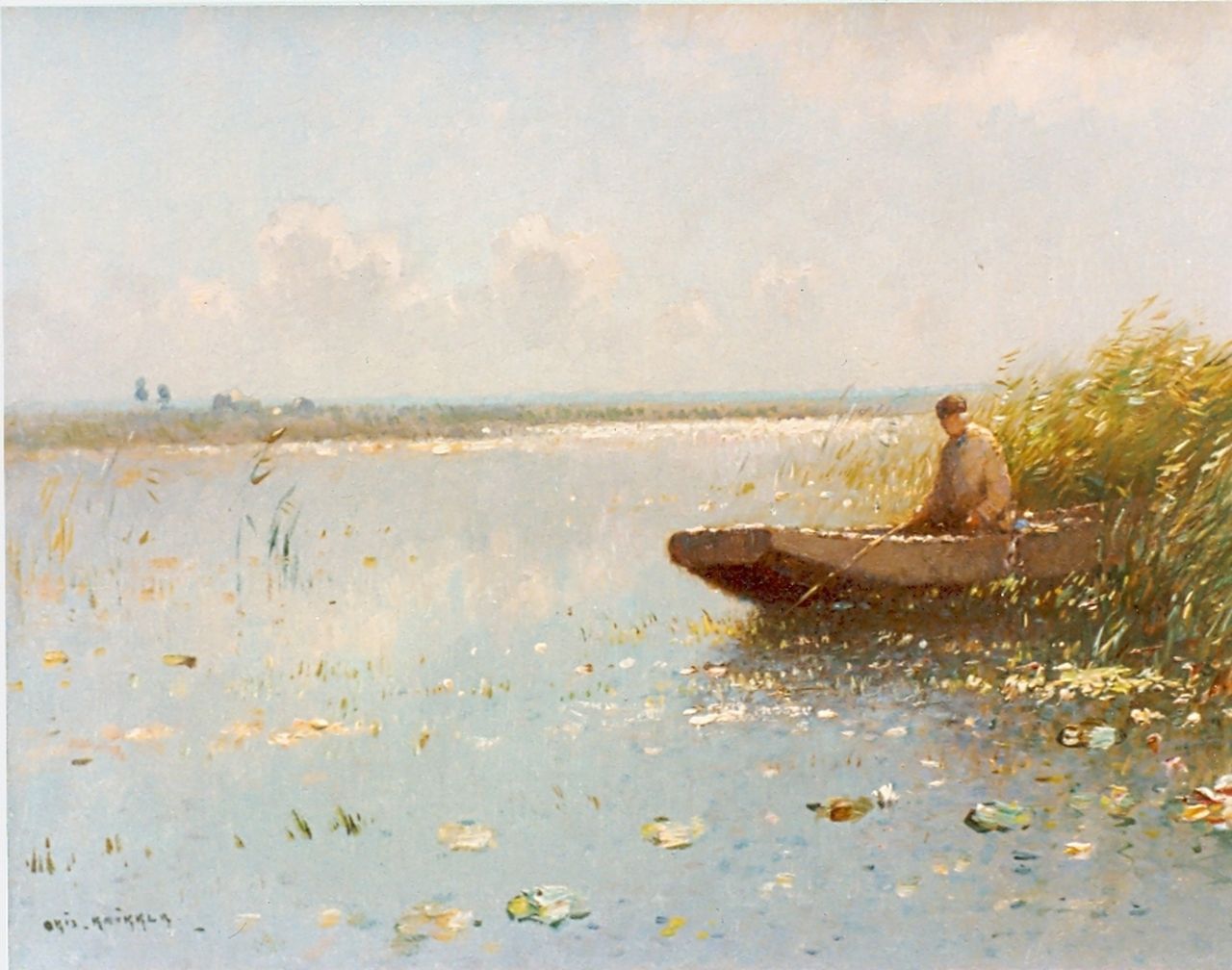 Aris Knikker kunstwerk • schilderij • voorheen te koop Vissers op plas