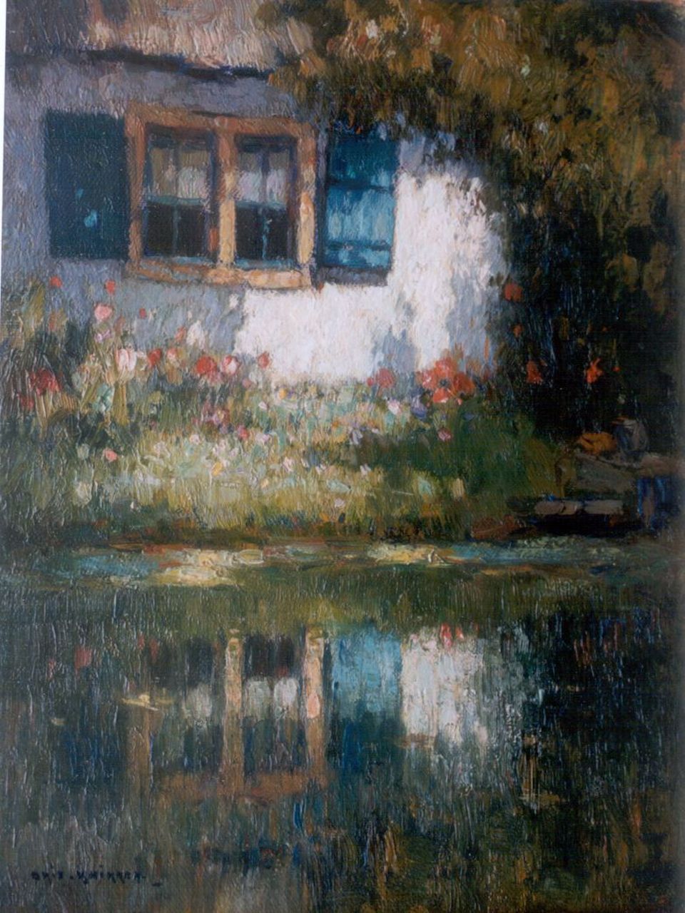 Aris Knikker kunstwerk • schilderij • voorheen te koop Zomers huisje aan de waterkant