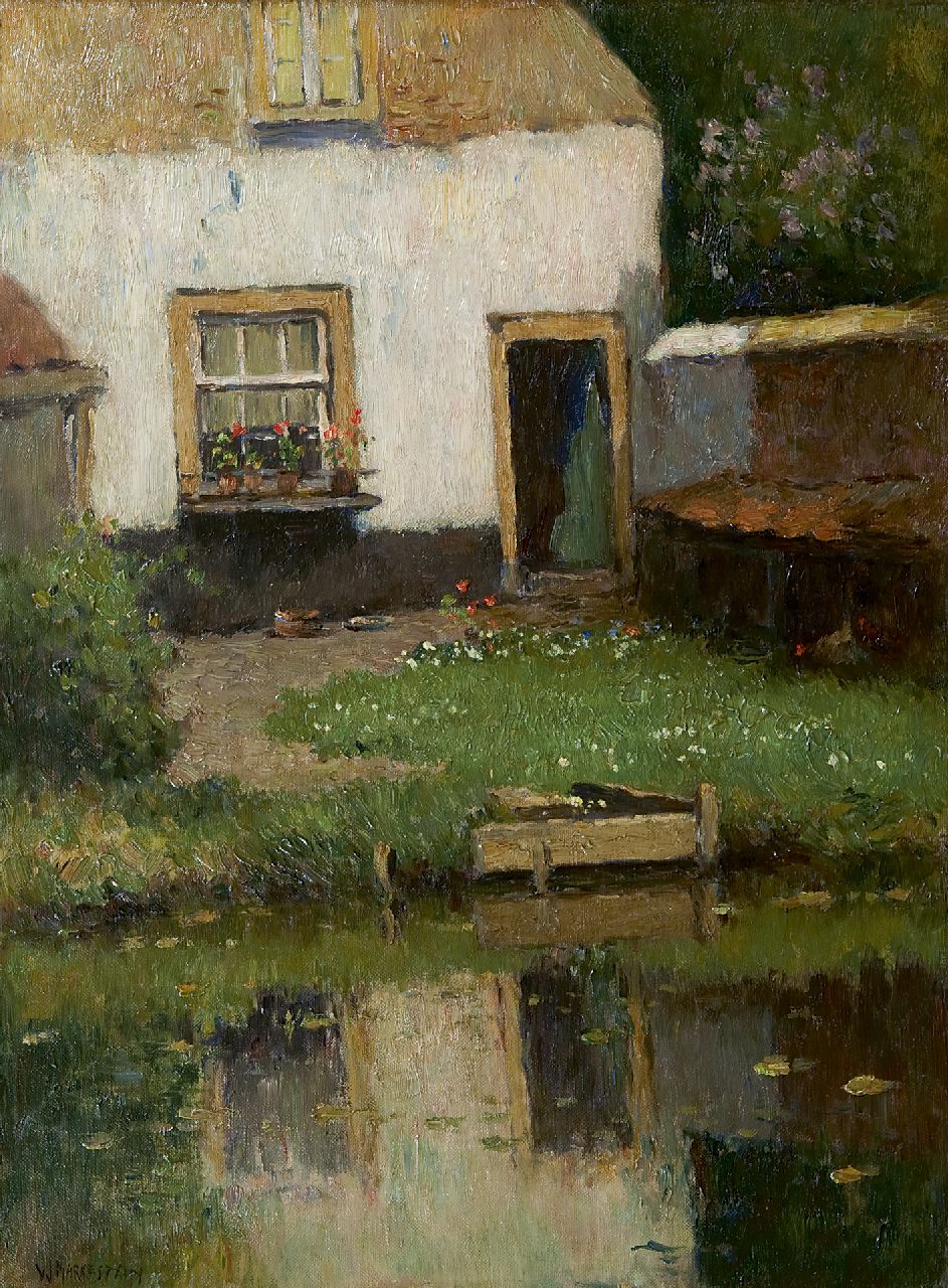 Aris Knikker kunstwerk • schilderij • voorheen te koop Zonnig tuintje bij het water