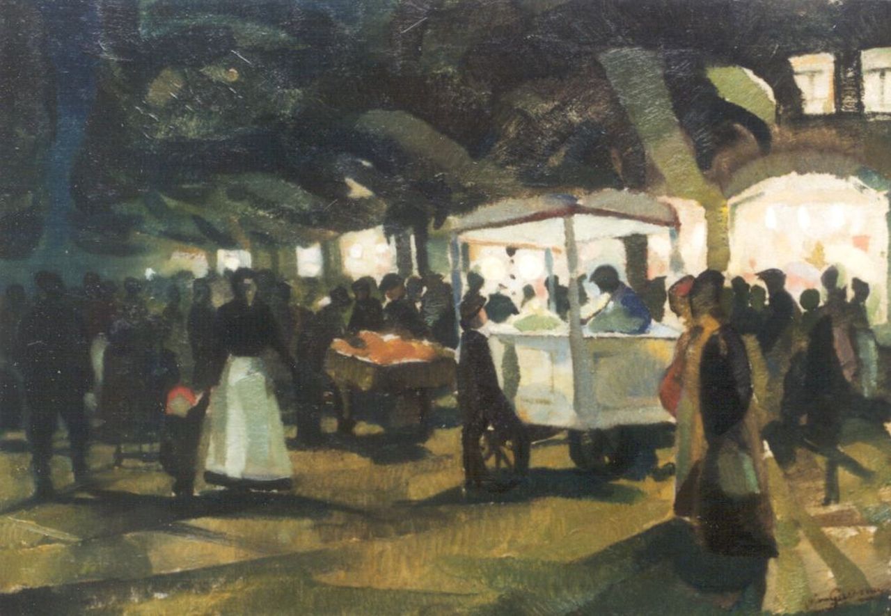 Arjen Galema kunstwerk • schilderij • voorheen te koop Drukbevolkte boulevard bij avond, Parijs