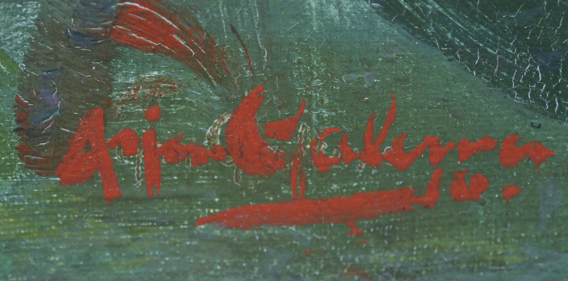 De Amsterdamse schilder Arjen Galema was een leerling van Georg Rueter, door wiens enigszins omfloerst impressionisme hij sterk werd beïnvloed. Hij schilderde landschappen, bloemstillevens, goed getypeerde portretten en figuren en genrestukken. Daarin doen zijn figuren zich doorgaans voor als warm getinte silhouetten zonder nauwkeurige uitwerking van details. Galema reisde veel naar Spanje en woonde en werkte tussen 1918 en 1925 in Parijs.