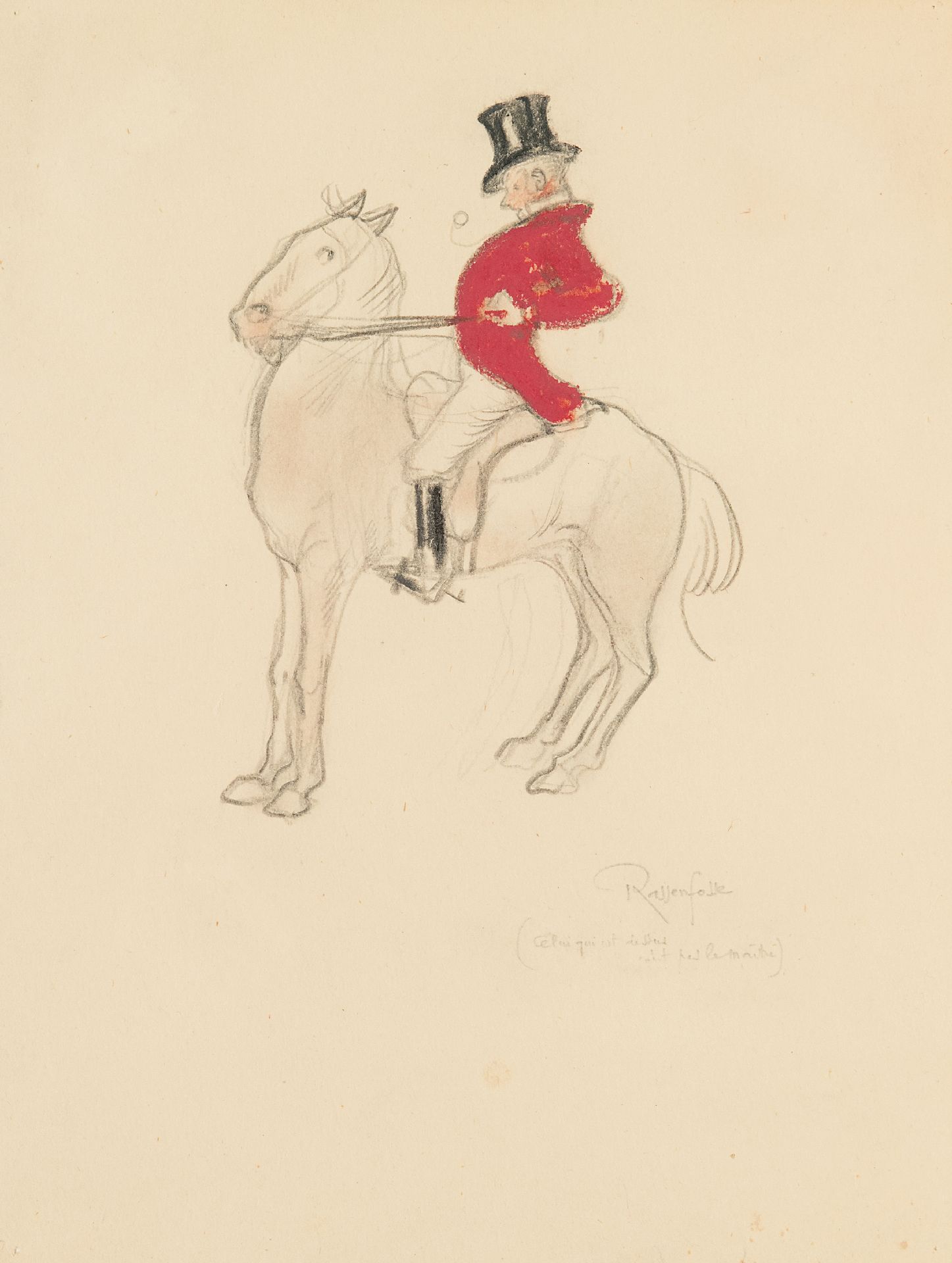Armand Rassenfosse kunstwerk • aquarel • tekening • voorheen te koop De ruiter