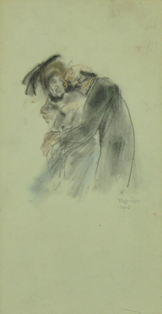Rassenfosse A.L.  | André Louis 'Armand' Rassenfosse | Aquarellen en tekeningen te koop aangeboden | Effusions tardives, pastel op papier 25,3 x 13,0 cm, gesigneerd rechtsonder en gedateerd 1903