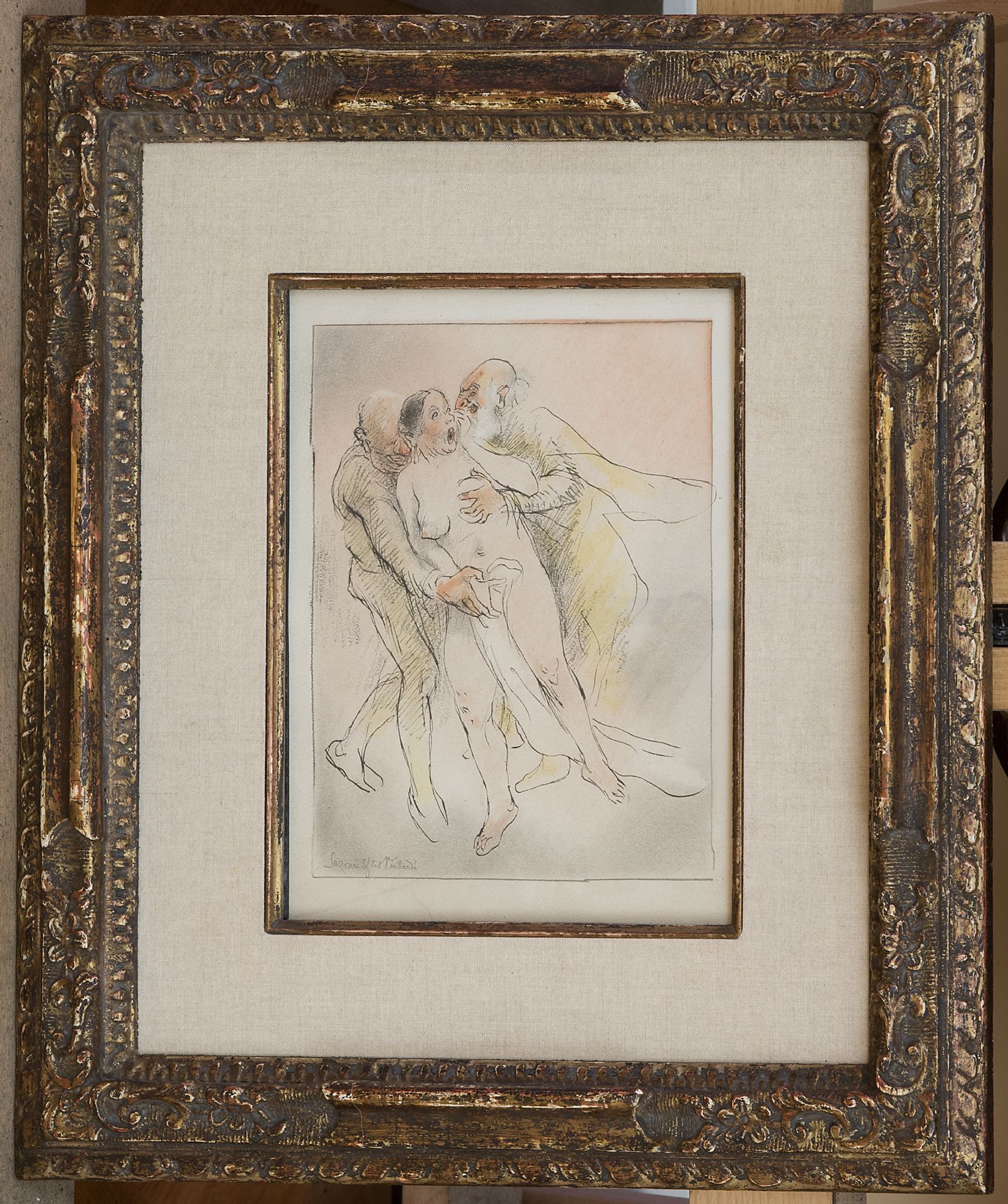 Armand Rassenfosse kunstwerk • aquarel • tekening • te koop Suzanne & Les Vieillards