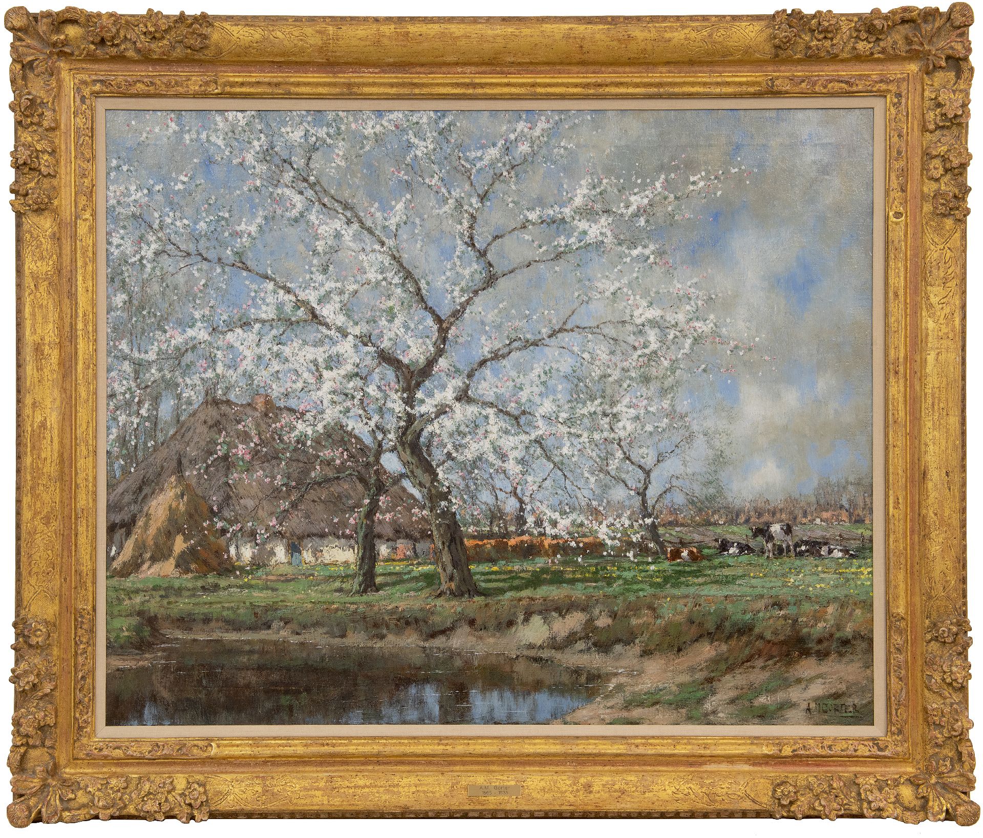 Arnold Marc Gorter kunstwerk • schilderij • voorheen te koop Appelbloesem bij boerderij
