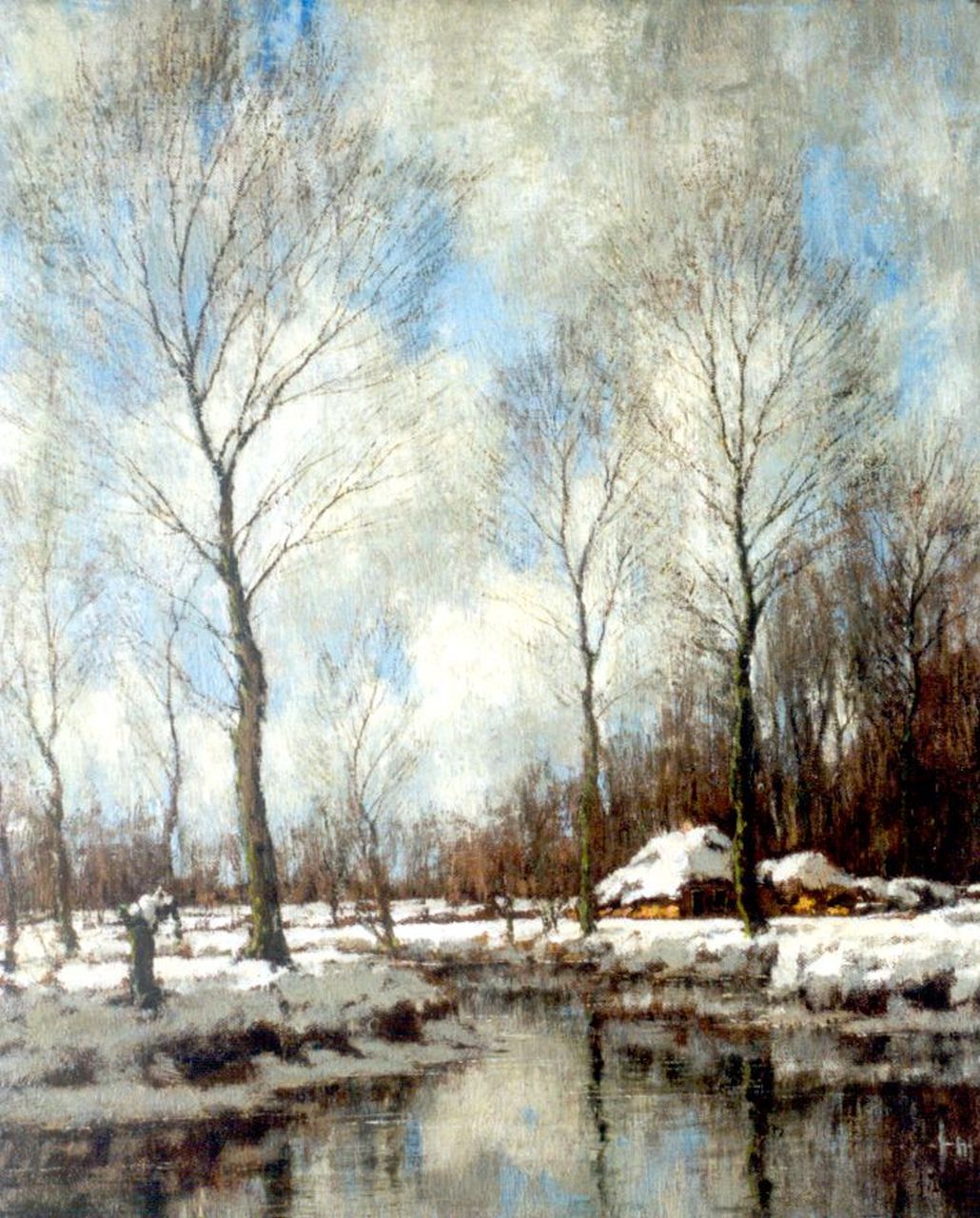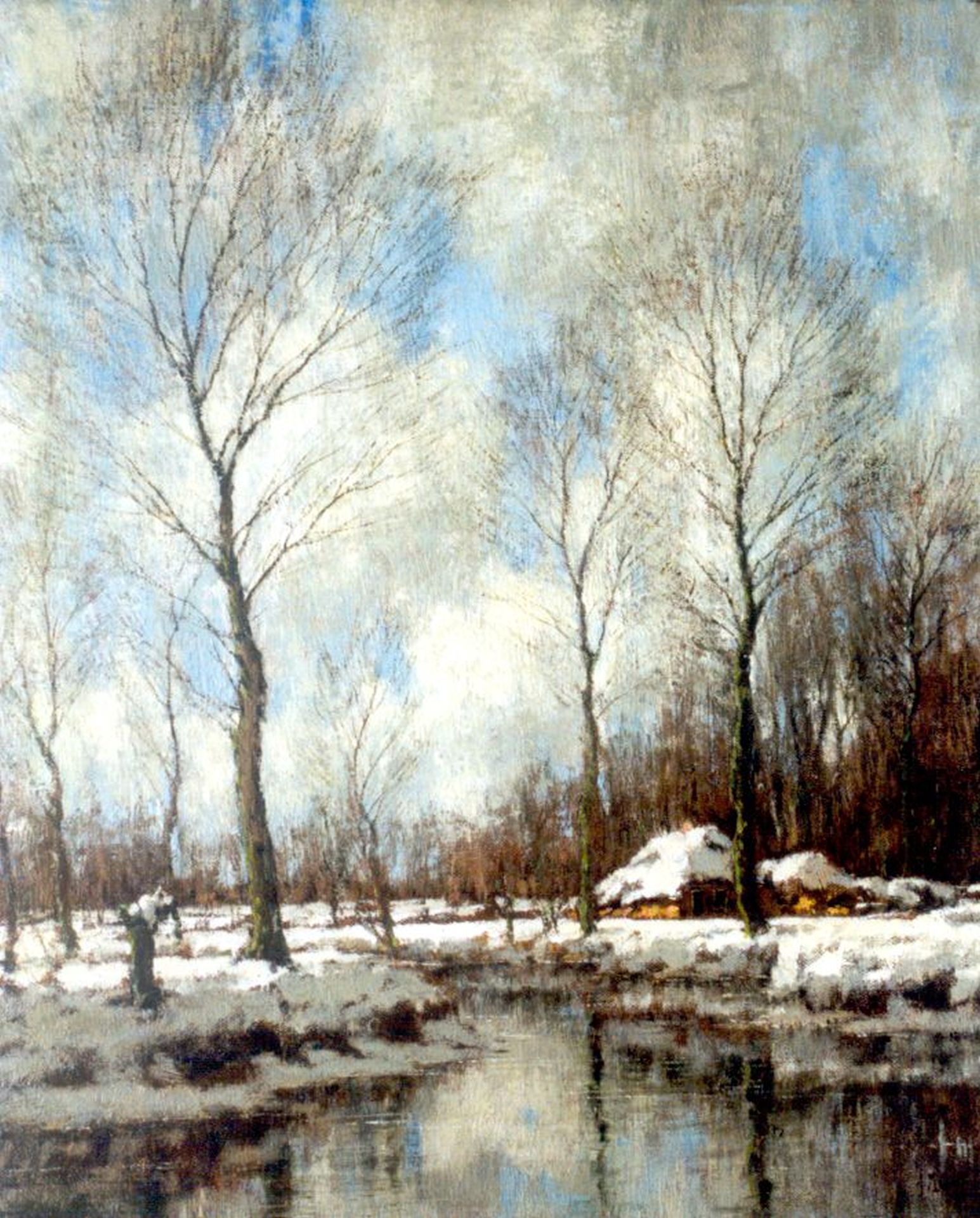 Arnold Marc Gorter kunstwerk • schilderij • voorheen te koop Besneeuwd winterlandschap bij de Vordense beek (pendant van zomer nr. 6001)
