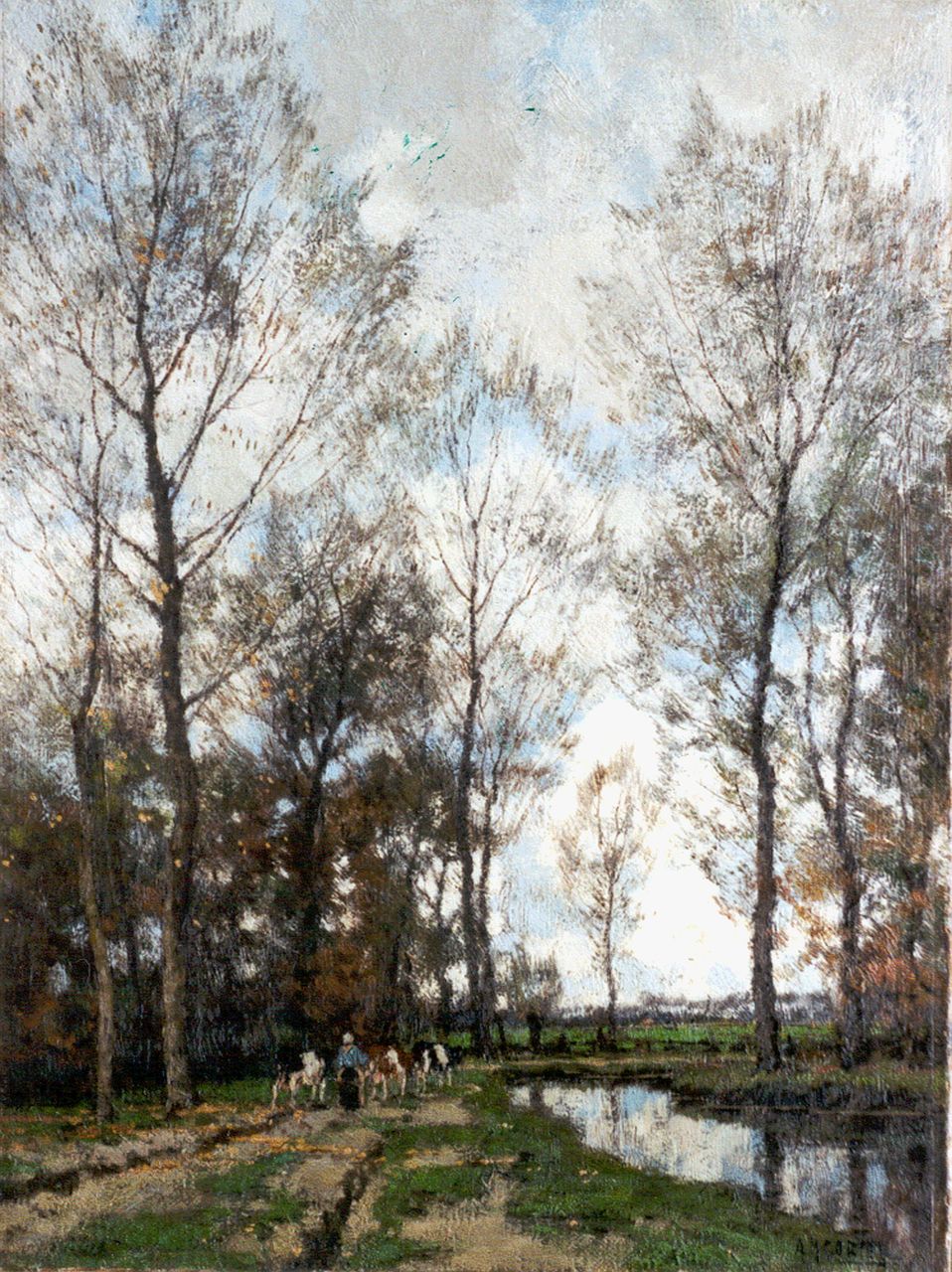 Arnold Marc Gorter kunstwerk • schilderij • voorheen te koop Boerin met vee in een herfstlandschap