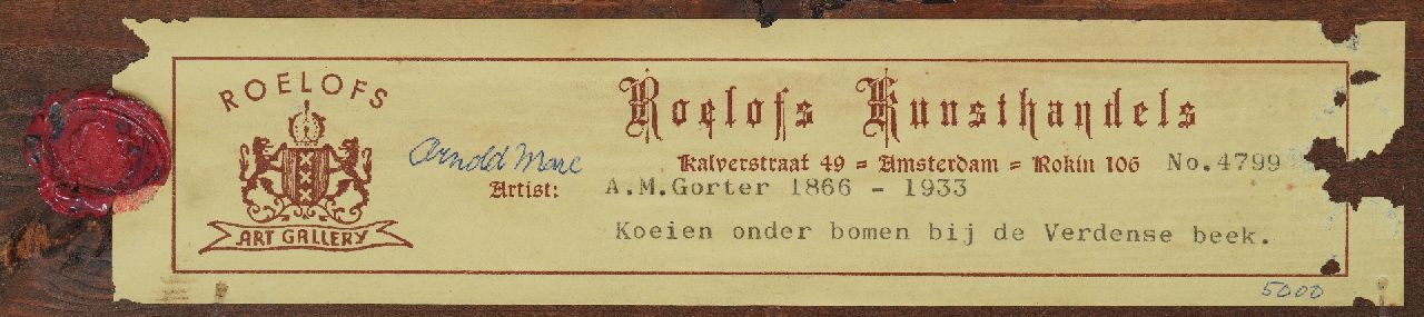 Arnold Marc Gorter kunstwerk • schilderij • voorheen te koop Koeien bij de Vordense Beek