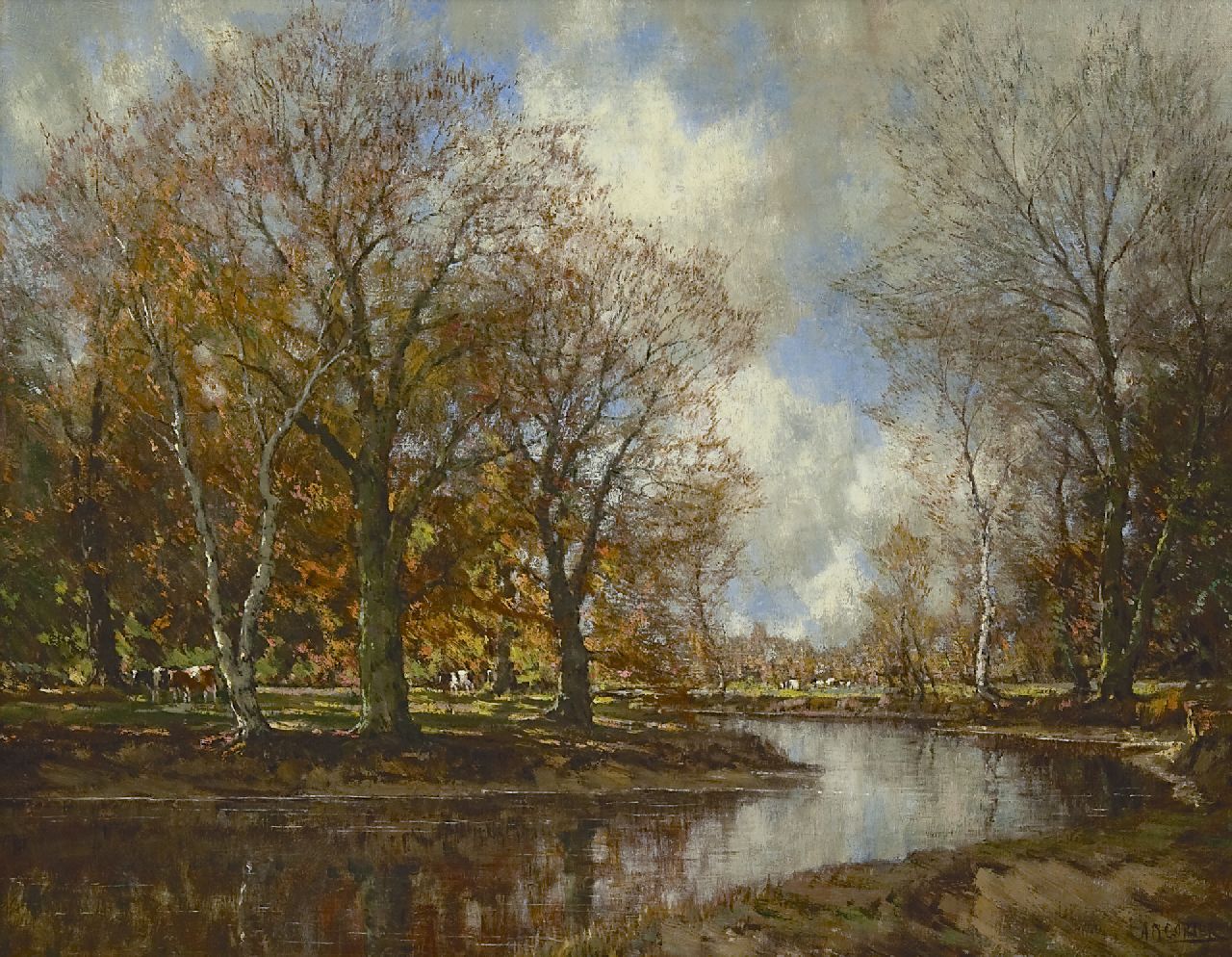 Arnold Marc Gorter kunstwerk • schilderij • voorheen te koop Koeien onder bomen bij een beek