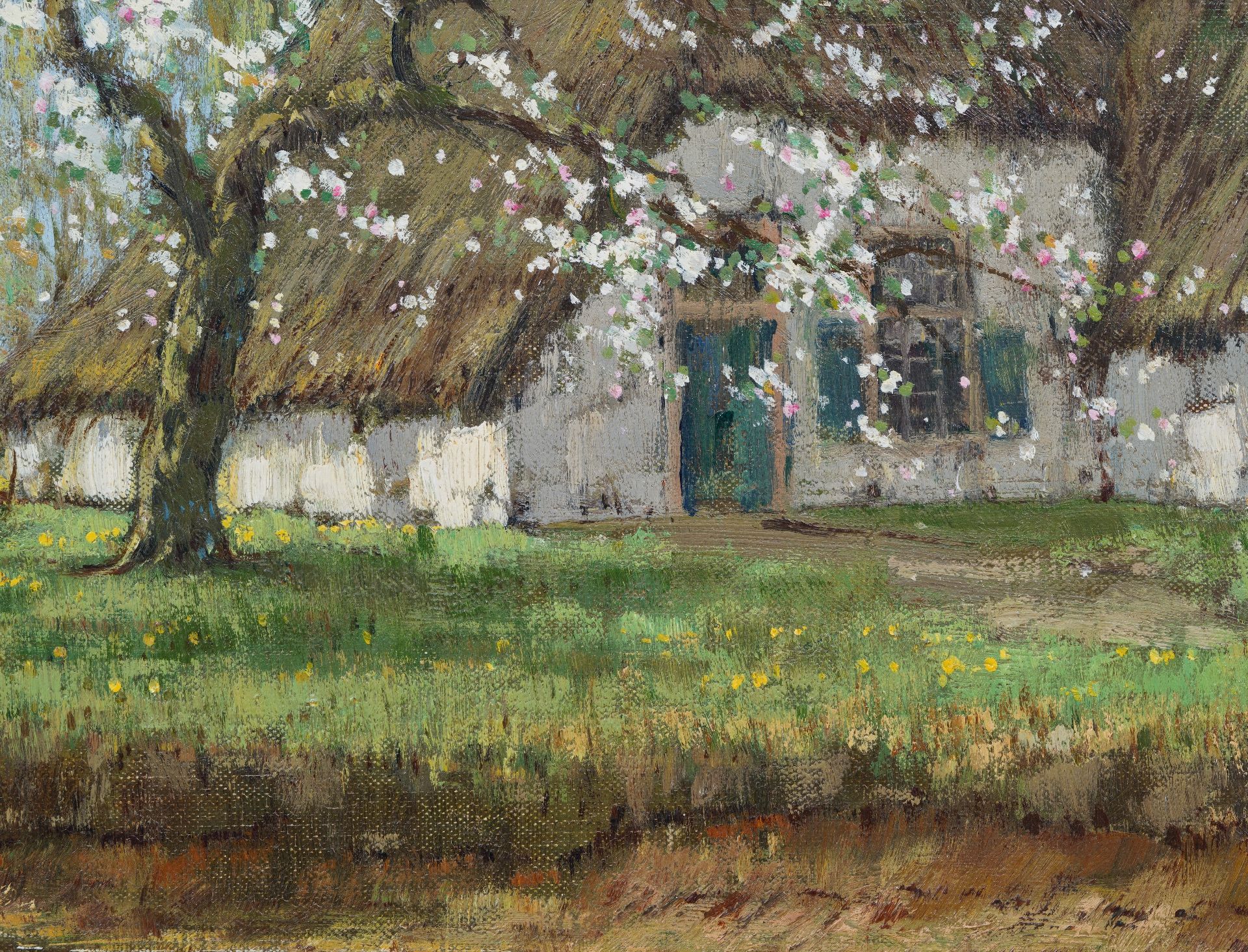 Arnold Marc Gorter | Appelbloesem bij boerderij, olieverf op doek, 75,6 x 96,3 cm, gesigneerd r.o.