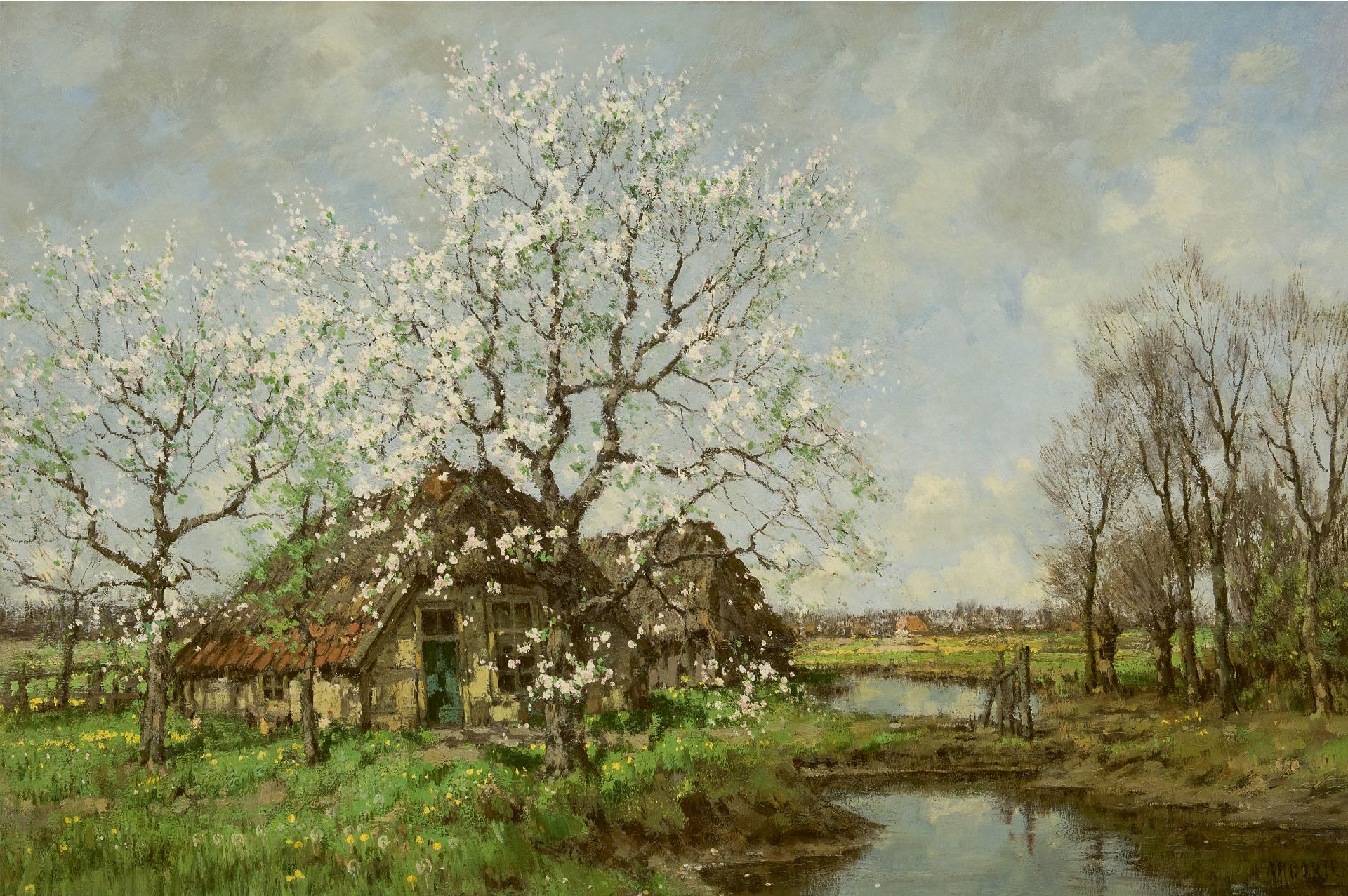 Arnold Marc Gorter kunstwerk • schilderij • te koop Perenbloesem aan de Vordense Beek