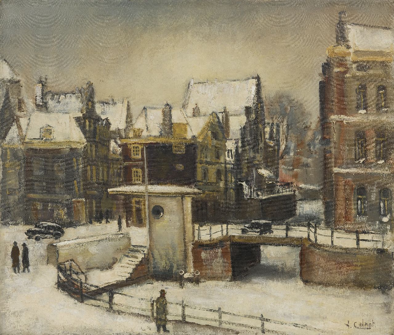 Arnout Colnot kunstwerk • schilderij • voorheen te koop Het Rokin in Amsterdam vanuit Arti gezien, winter 1940-1941