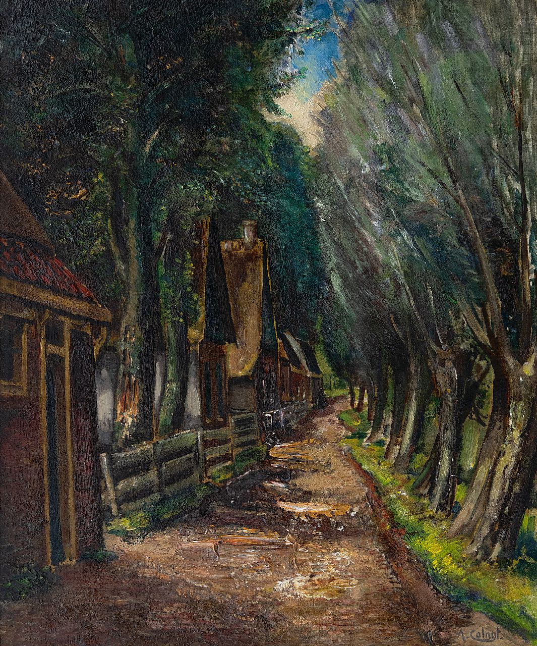 Arnout Colnot kunstwerk • schilderij • voorheen te koop Zandpad met huizen