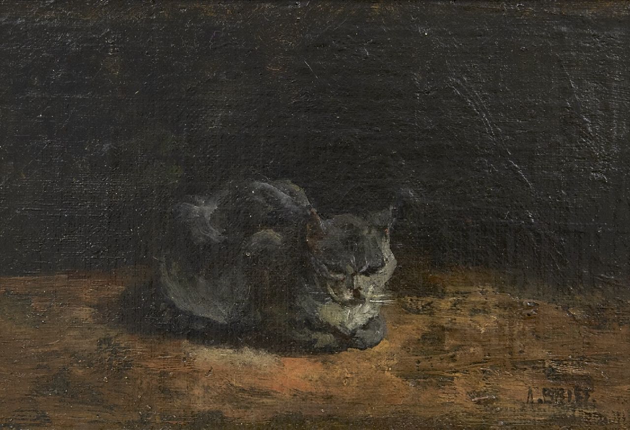 Arthur Briët kunstwerk • schilderij • voorheen te koop Slapende grijze kat