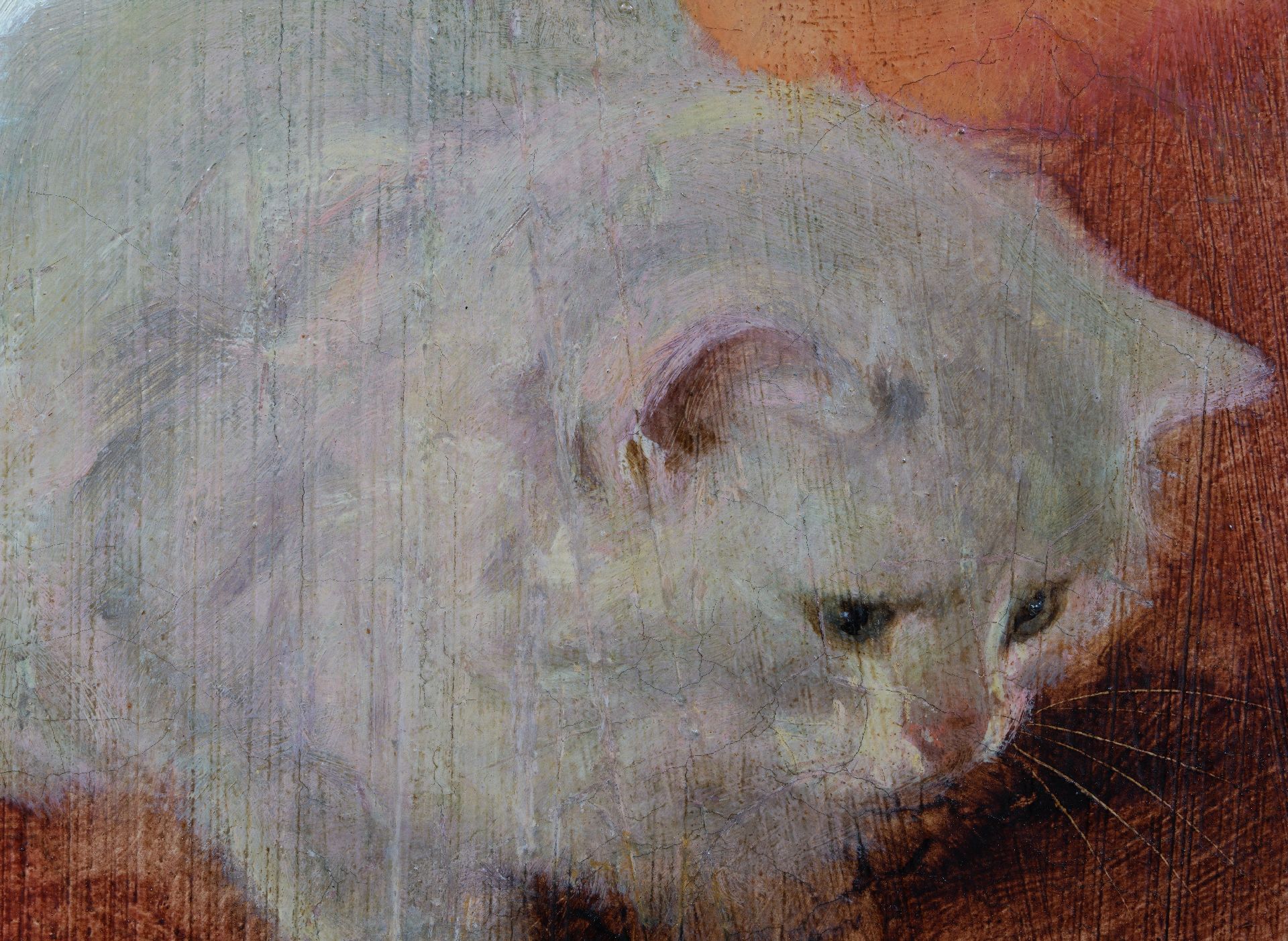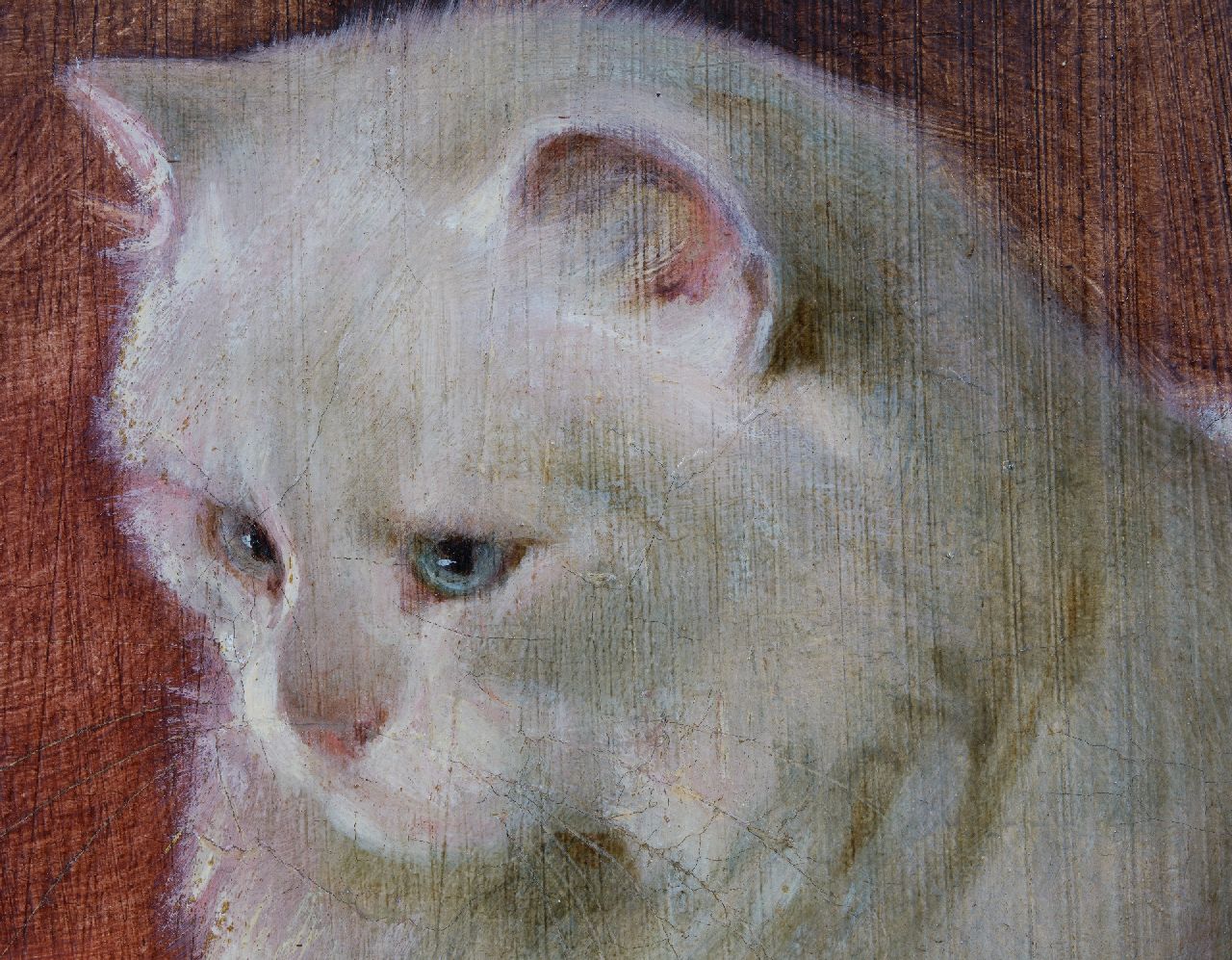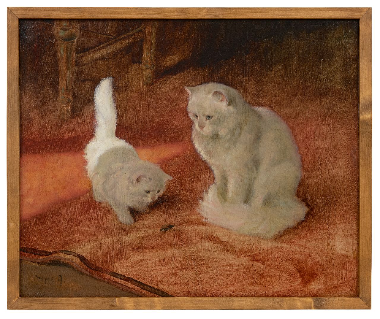 Arthur Heyer kunstwerk • schilderij • te koop Angora kat en kitten met een kevertje