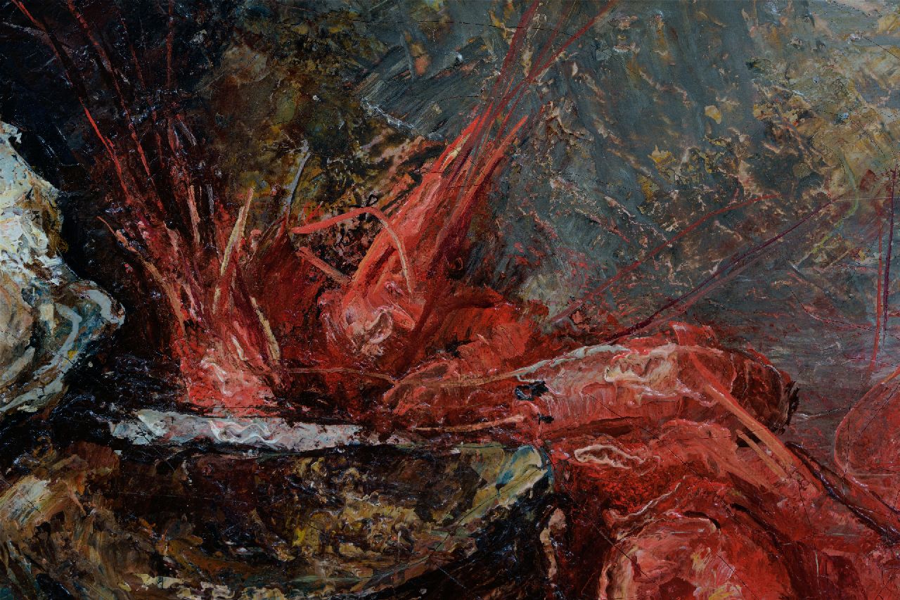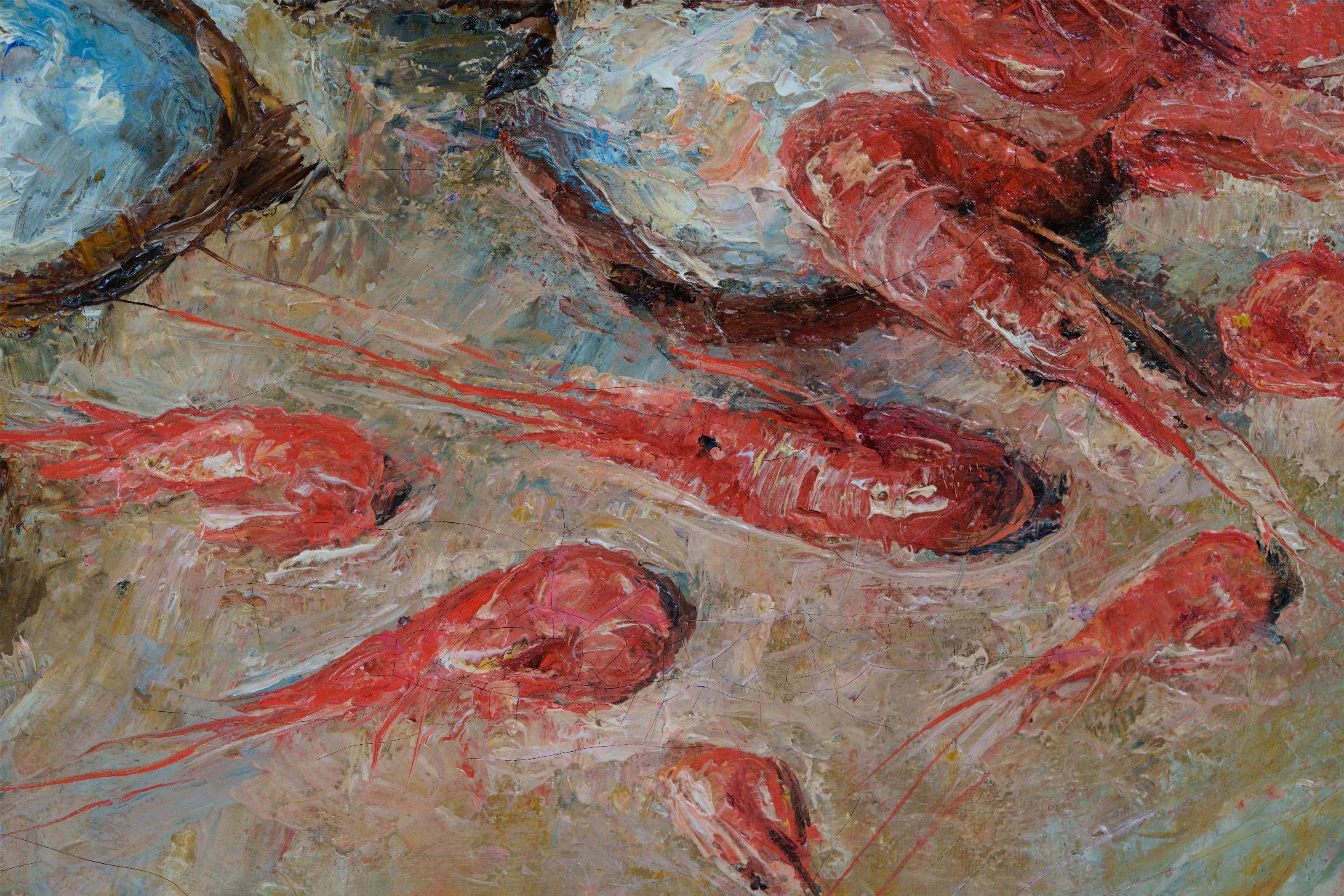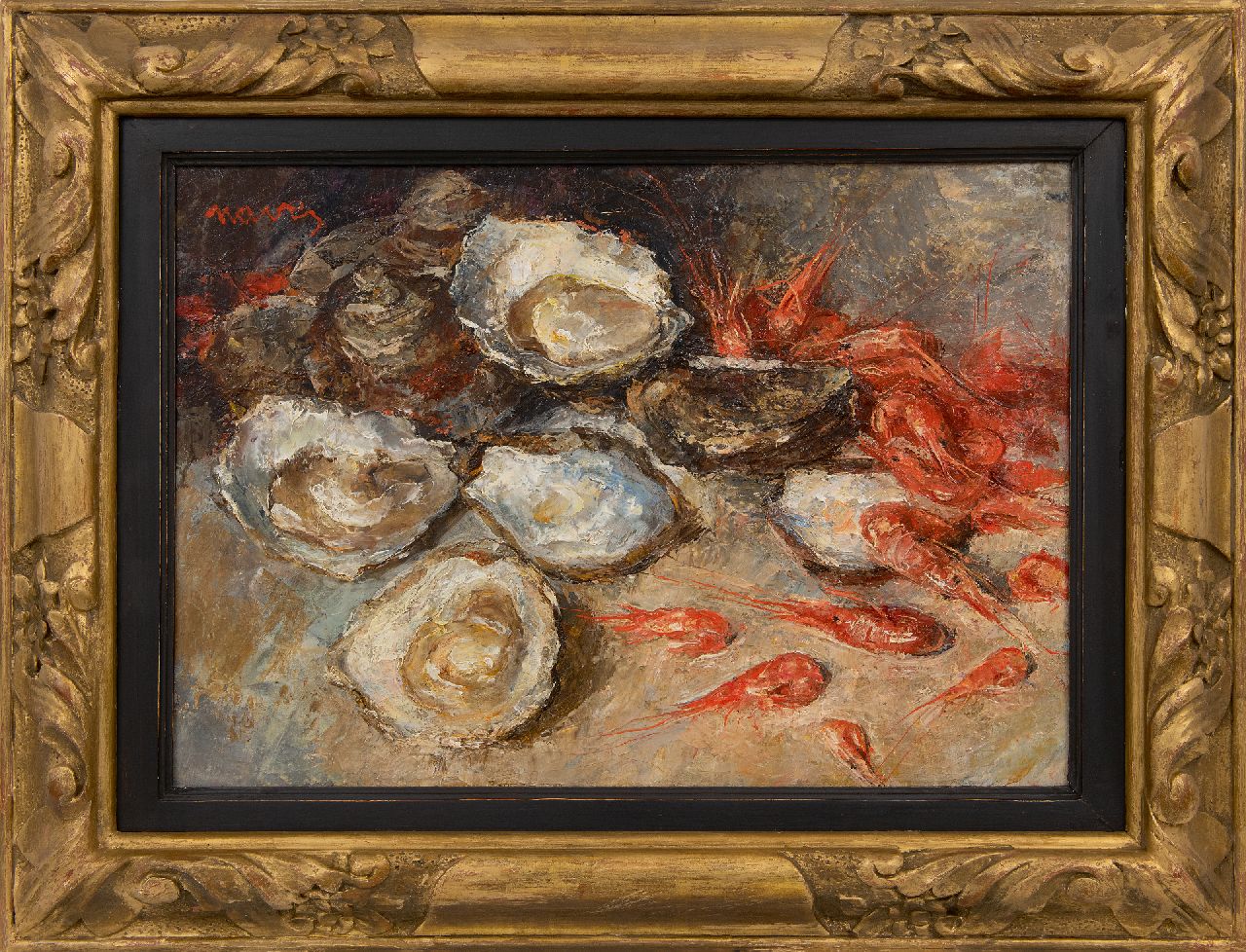 Arthur Navez kunstwerk • schilderij • voorheen te koop Stilleven van oesters en garnalen