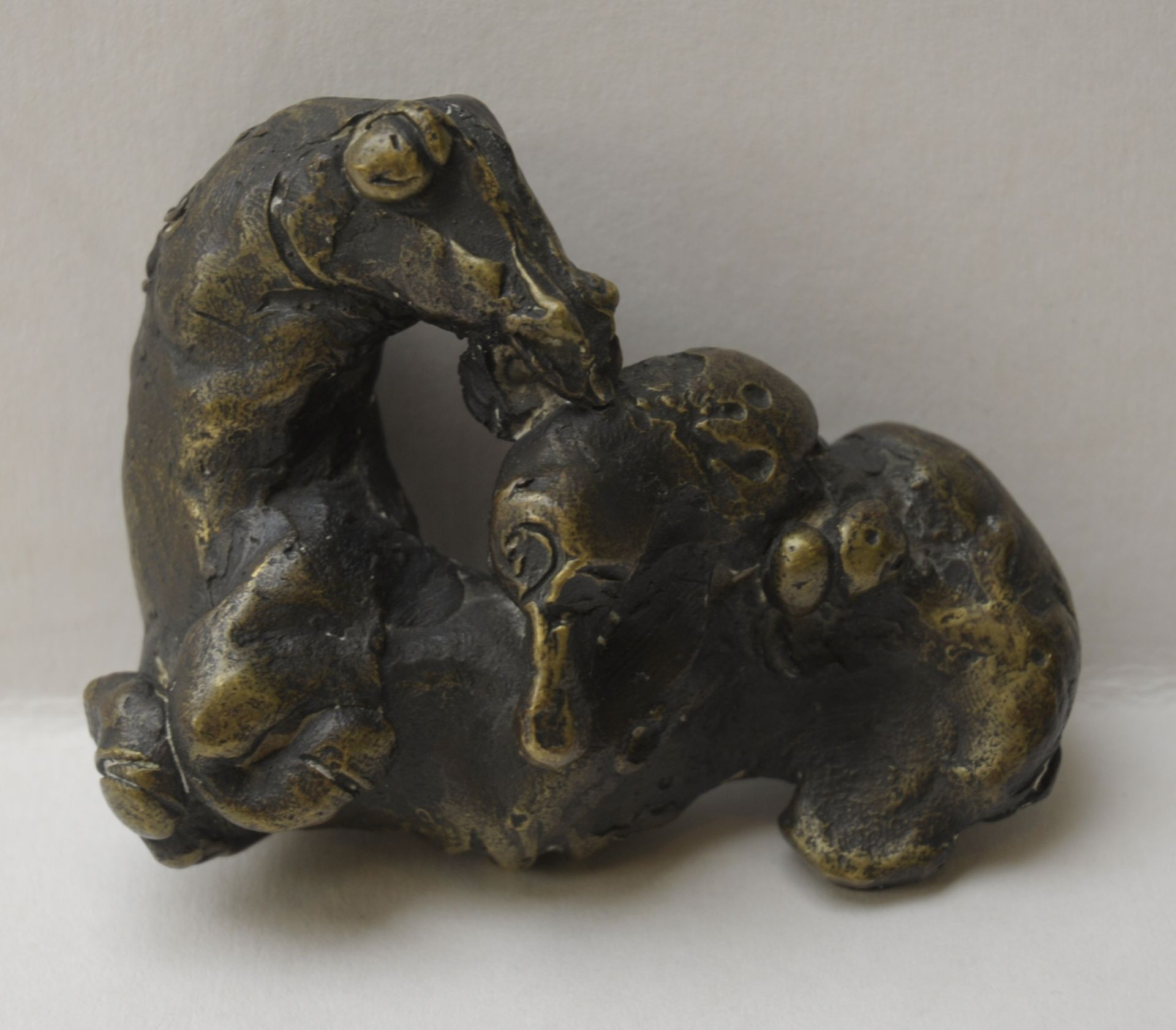 brons 6,9 x 8,8 cm, gesigneerd met initialen op hals
