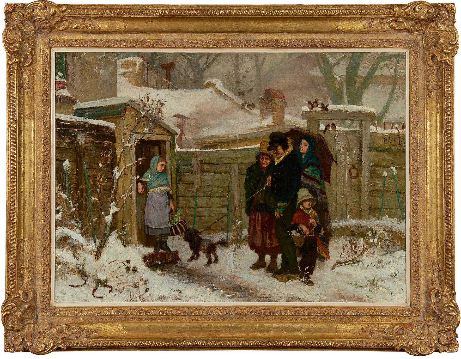 August Allebé bracht van een bezoek aan Parijs in 1958 het objectieve realisme van Courbet mee, en paste dit toe in voorstellingen uit het dagelijks leven van burgers en boeren. Hij wilde zijn onderwerpen waarheidsgetrouw uitbeelden, gedetailleerd maar met een duidelijke penseelstreek. Zo ook in deze voorstelling. Weloverwogen kiest hij zijn kleuren: het roestbruin, lila en blauw steken af tegen het gebroken wit van de sneeuw en de bruine schutting. Omdat een duidelijke handeling in zijn genrestukken ontbreekt, geeft hij ze meestal een titel, in dit geval 'December'.