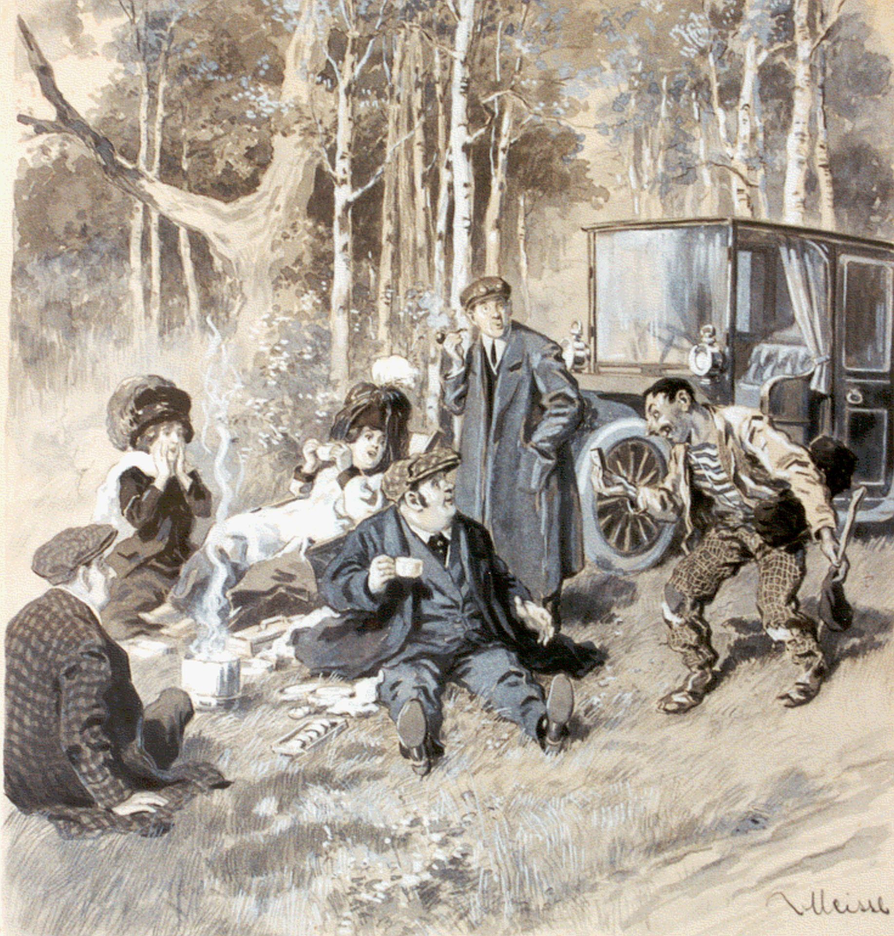 August E. Ritter von Meissl kunstwerk • aquarel • tekening • voorheen te koop De landloper