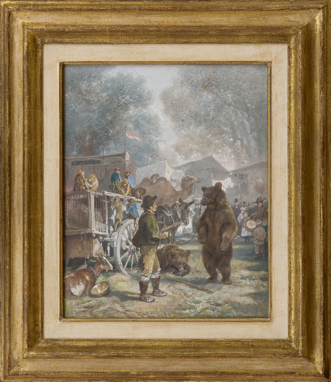 August Specht kunstwerk • aquarel • tekening • te koop Circus bij het slot, Stuttgart